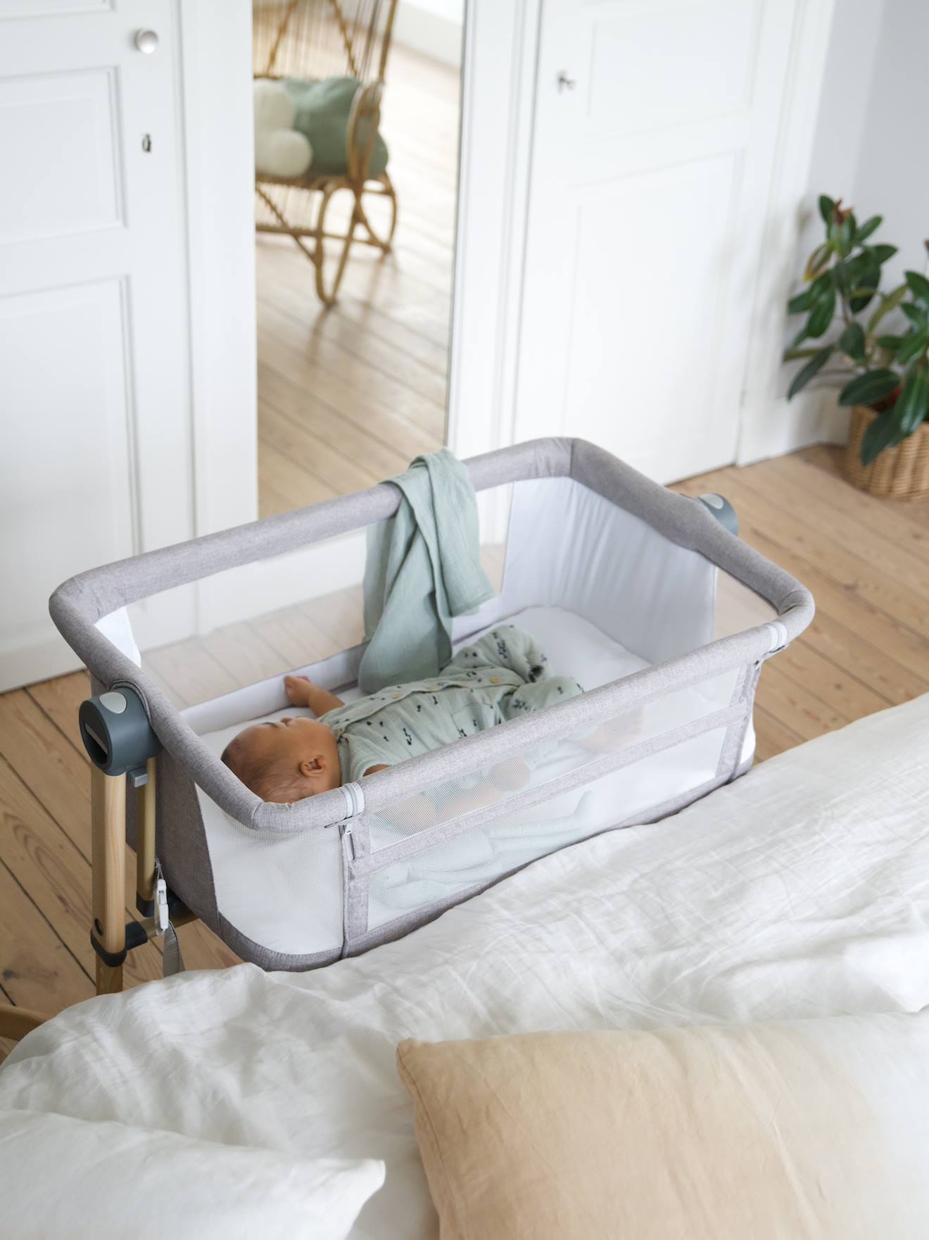 Les jeunes parents aiment être rassurés lors du retour de la maternité. Le berceau cododo est spécialement conçu pour venir s'adapter et se coller au bord du lit parental, représentant ainsi une extension du lit tout en conservant un espace dédié à bébé. Placez le berceau cododo contre votre lit et ouvrez le pan du berceau. Bébé dort paisiblement et vous avez l'oeil sur lui à tout moment de la nuit, sans avoir à vous lever.