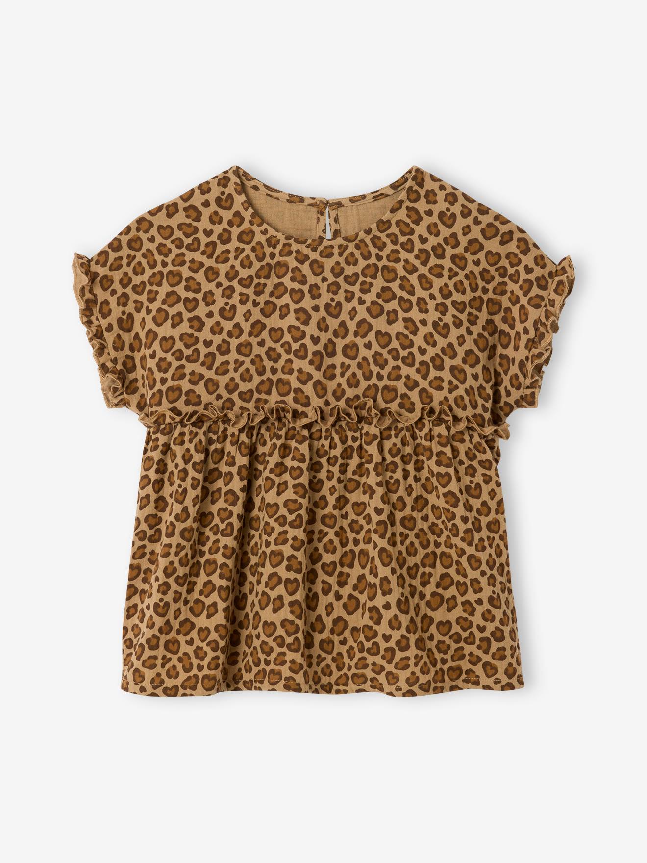 Blouse imprimée fille en gaze de coton 100% coton, effet naturellement gaufré.