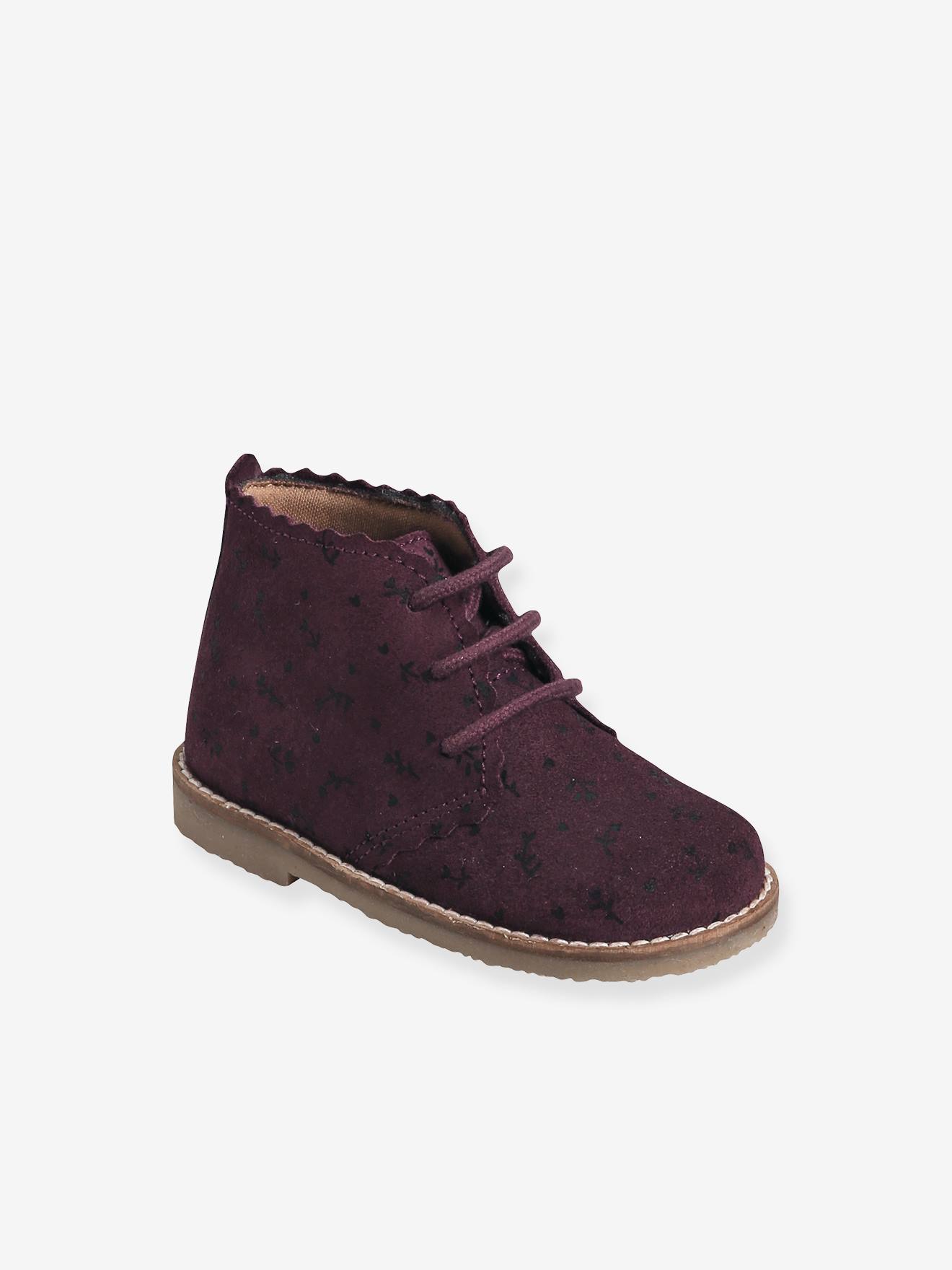 • Bottines bébé fille cuir lacées bleu marine imprimé étoile+bordeaux - vertbaudet enfant