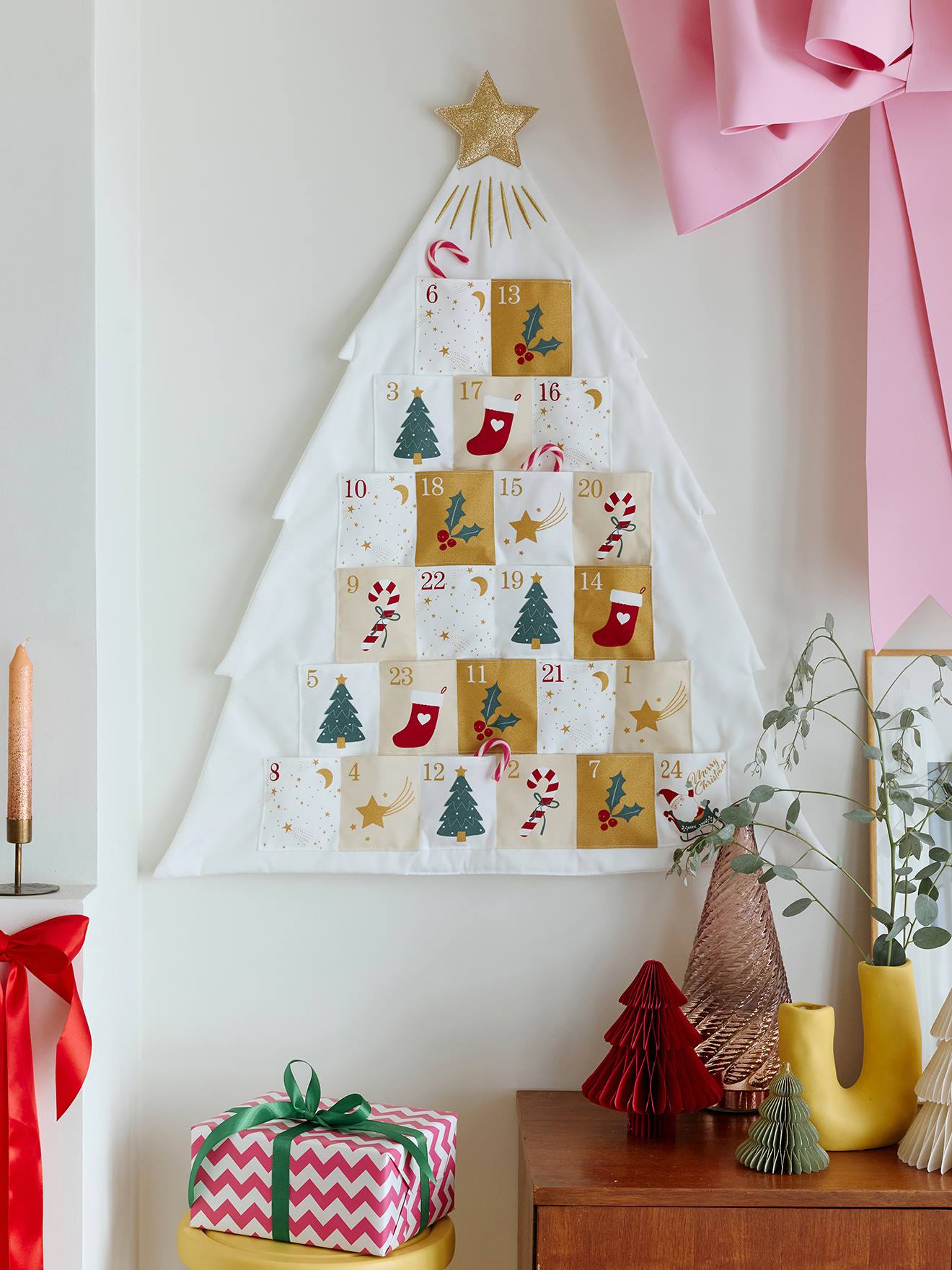 Un calendrier de l'avent en forme de sapin, c'est l'idée déco parfaite pour patienter jusqu'à Noël ! Avec ses 24 pochettes, il permettra de cacher les petits cadeaux et surprises qui feront plaisir aux enfants.