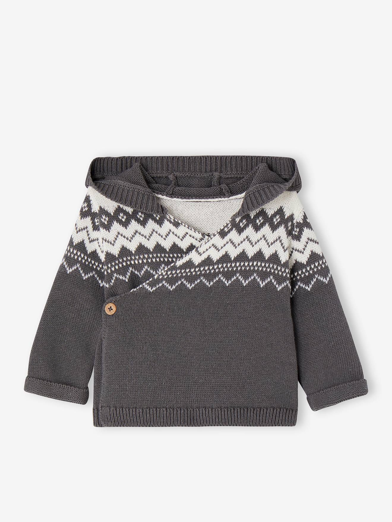 Cardigan à capuche bébé en maille jacquard toute douce 60% coton, 40% acrylique,