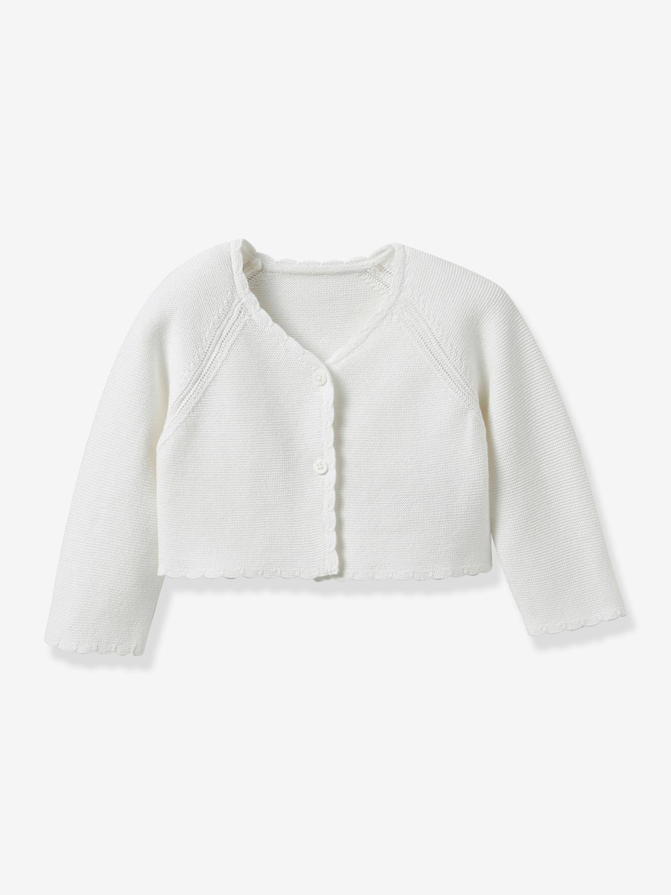 Accueil>Vêtements bébé>Pull bébé, gilet bébé et sweat bébé>Gilet bébé>Cardigan court fille - coton biologique- collection fêtes et mariages - écru