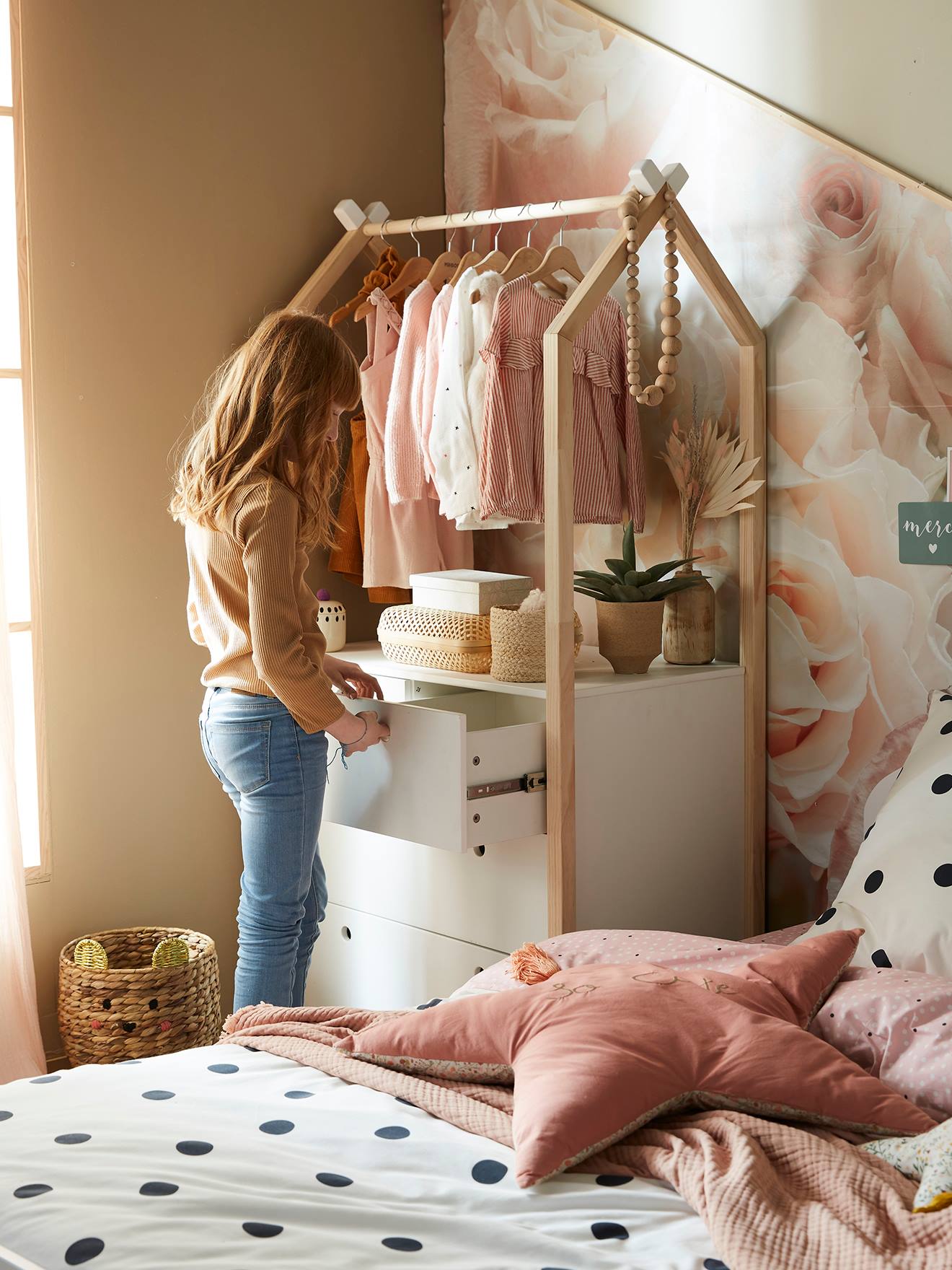 Pratique et très jolie, cette commode accueille les habits dans les tiroirs et permet d'en suspendre grâce à sa barre de penderie. Un beau meuble inspiré du design scandinave, adapté à toutes les déco, du bébé au pré-ado !