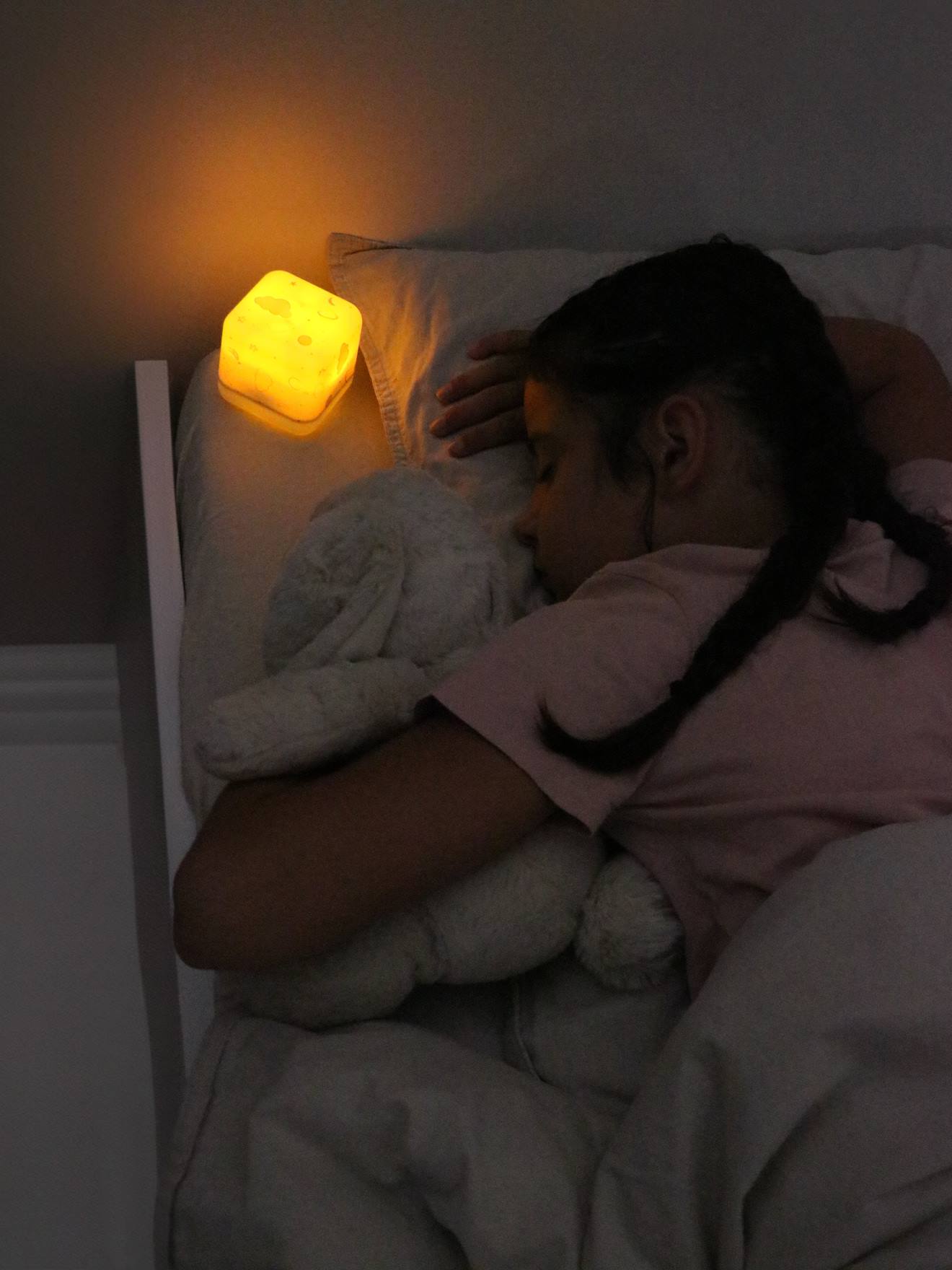 Cube B™ - Espace est une veilleuse nomade multifonction qui émet une douce lueur pour rassurer les enfants au moment du coucher. Elle peut être utilisée seule ou branchée au mur grâce à son bloc en 2 parties qui, une fois assemblées, brillent ensemble pour créer un parfait cube lumineux. La veilleuse Cube B™ - Espace change de couleur et d’intensité de lumière grâce à son capteur tactile intuitif, simple d’utilisation. Branchée, elle émet une jolie lueur blanche réconfortante qui offre une ambiance apaisante dans la chambre. En utilisation nomade, elle diffuse une lumière blanche pour une ambiance douce puis d’un simple toucher, une lumière ambre réconfortante, plus ou moins intense. Cube B™ - Espace est le compagnon lumineux pour des nuits douces et paisibles pour les bébés et les enfants. Son format compact permet une prise en main facile pour les plus grands qui cherchent leur chemin dans l'obscurité sans réveiller leurs parents. Elle possède un minuteur qui permet de garantir une obscurité complète après l’endormissement.