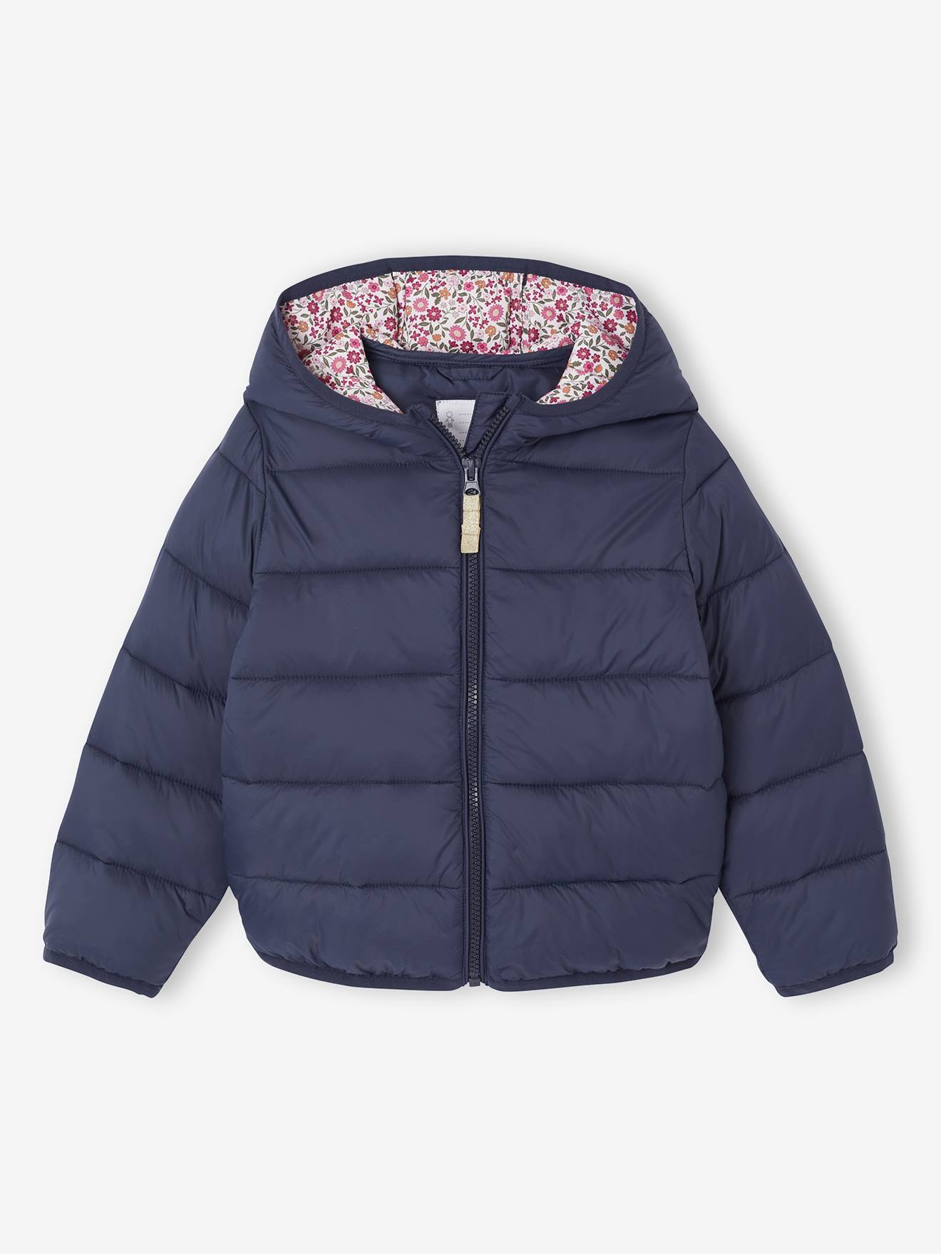 • Doudoune fille légère à capuche marine+vert de gris+vieux rose - vertbaudet enfant