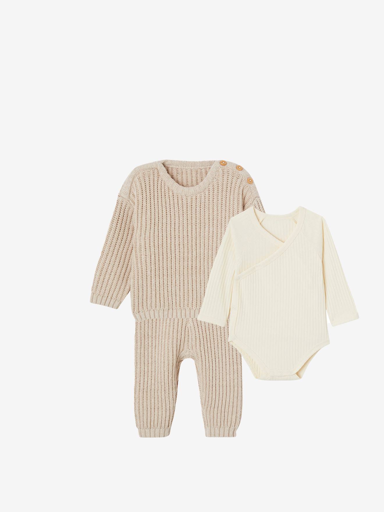 Accueil>Vêtements bébé>Ensembles vêtement bébé>Ensemble 3 pièces mixte bébé naissance - beige chiné