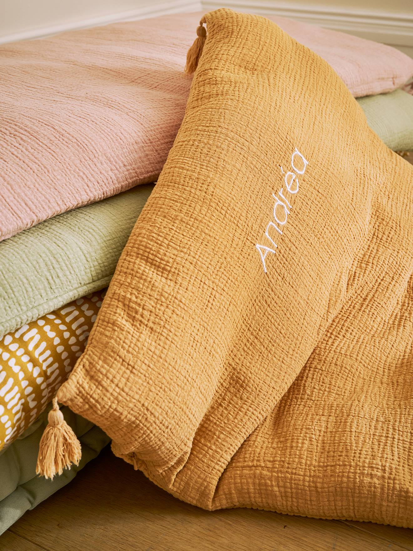 • Housse de matelas de sol personnalisable cannelle+rose poudré+vert sauge - vertbaudet enfant