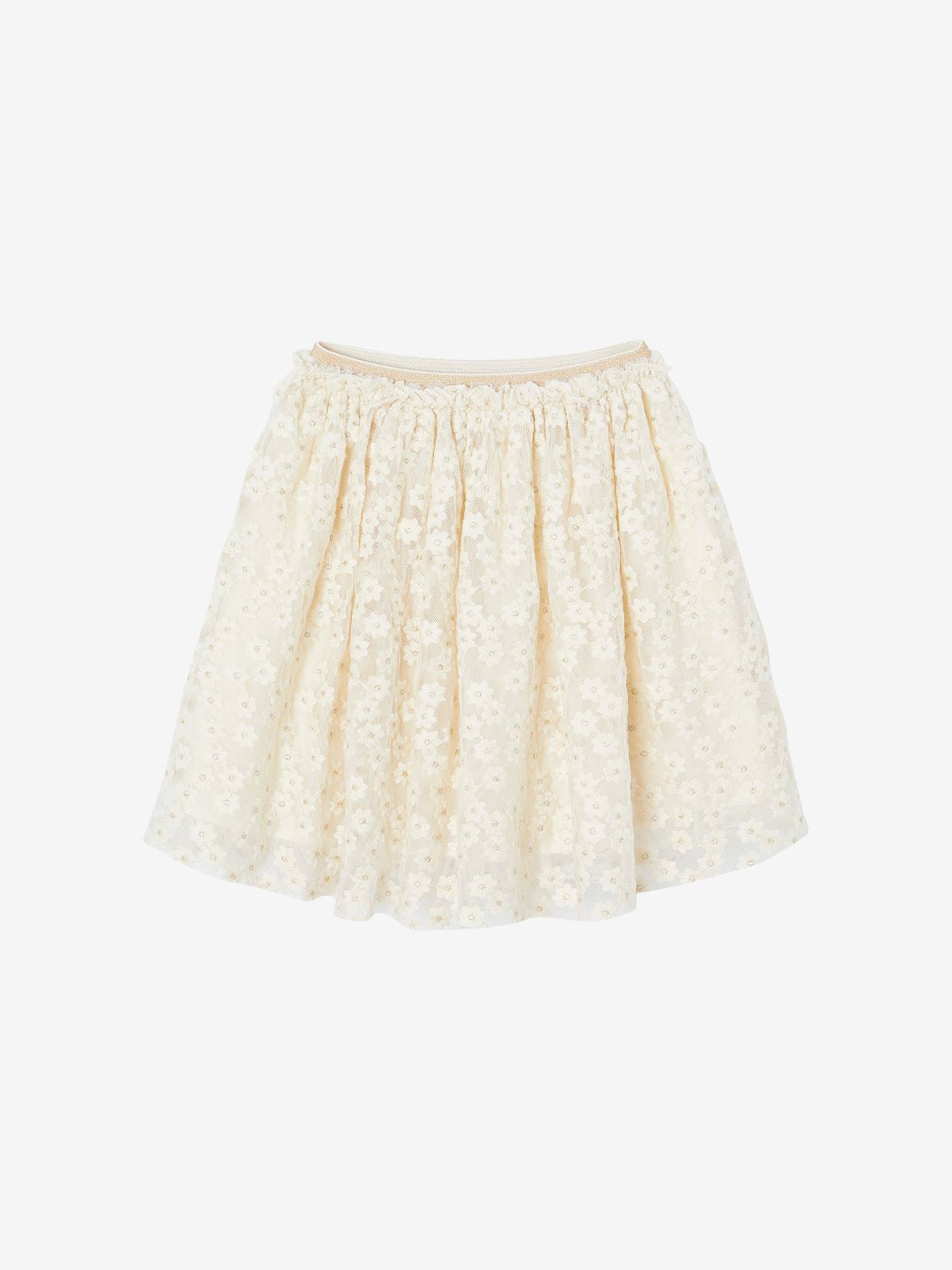• Jupe cérémonie brodée fleurs irisées vanille - vertbaudet enfant