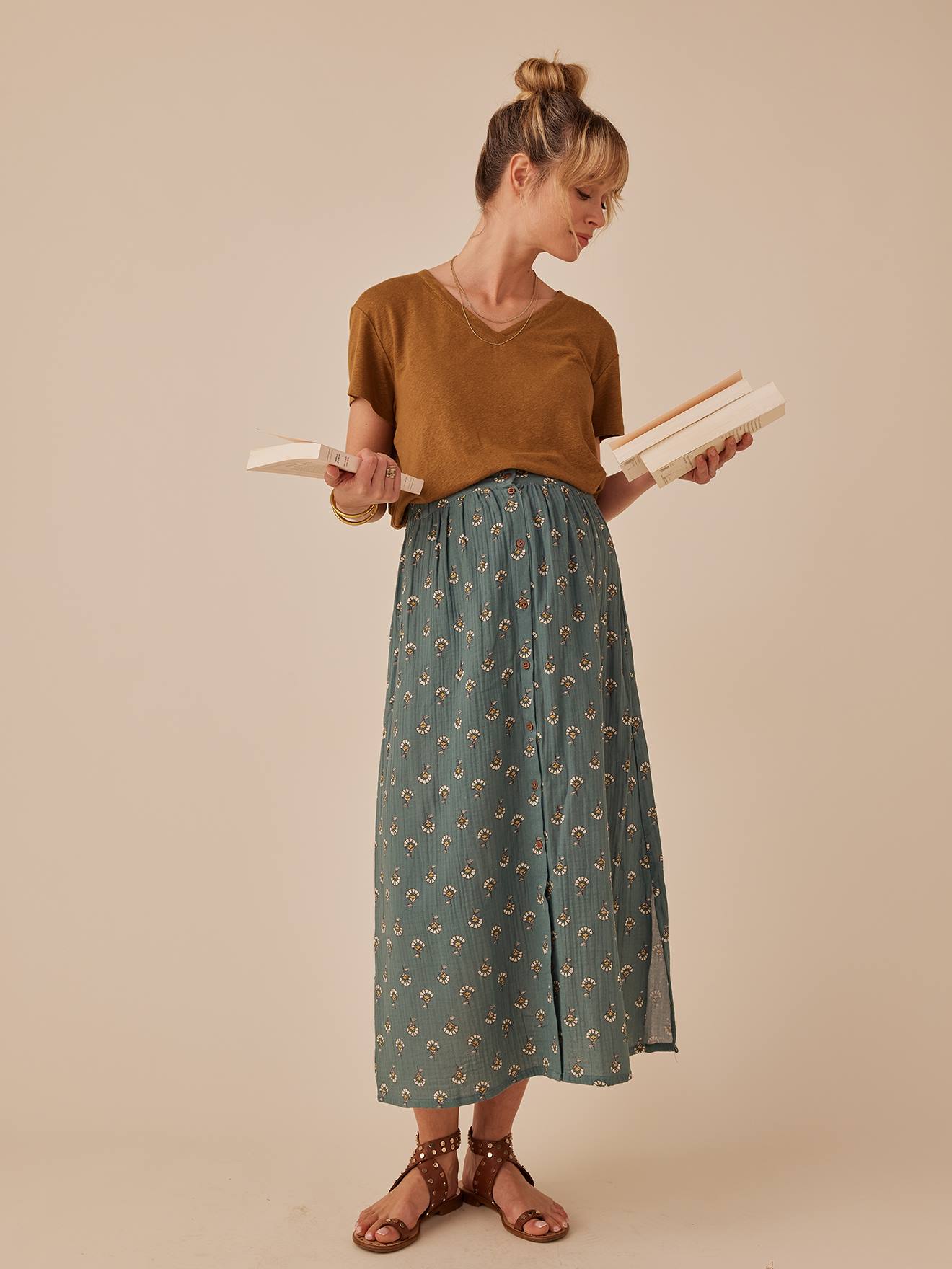• Jupe longue grossesse en gaze de coton