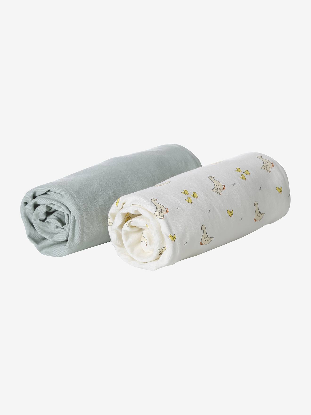 Lot de 2 housses pour berceau et cododo en coton bio* - blanc imprimé