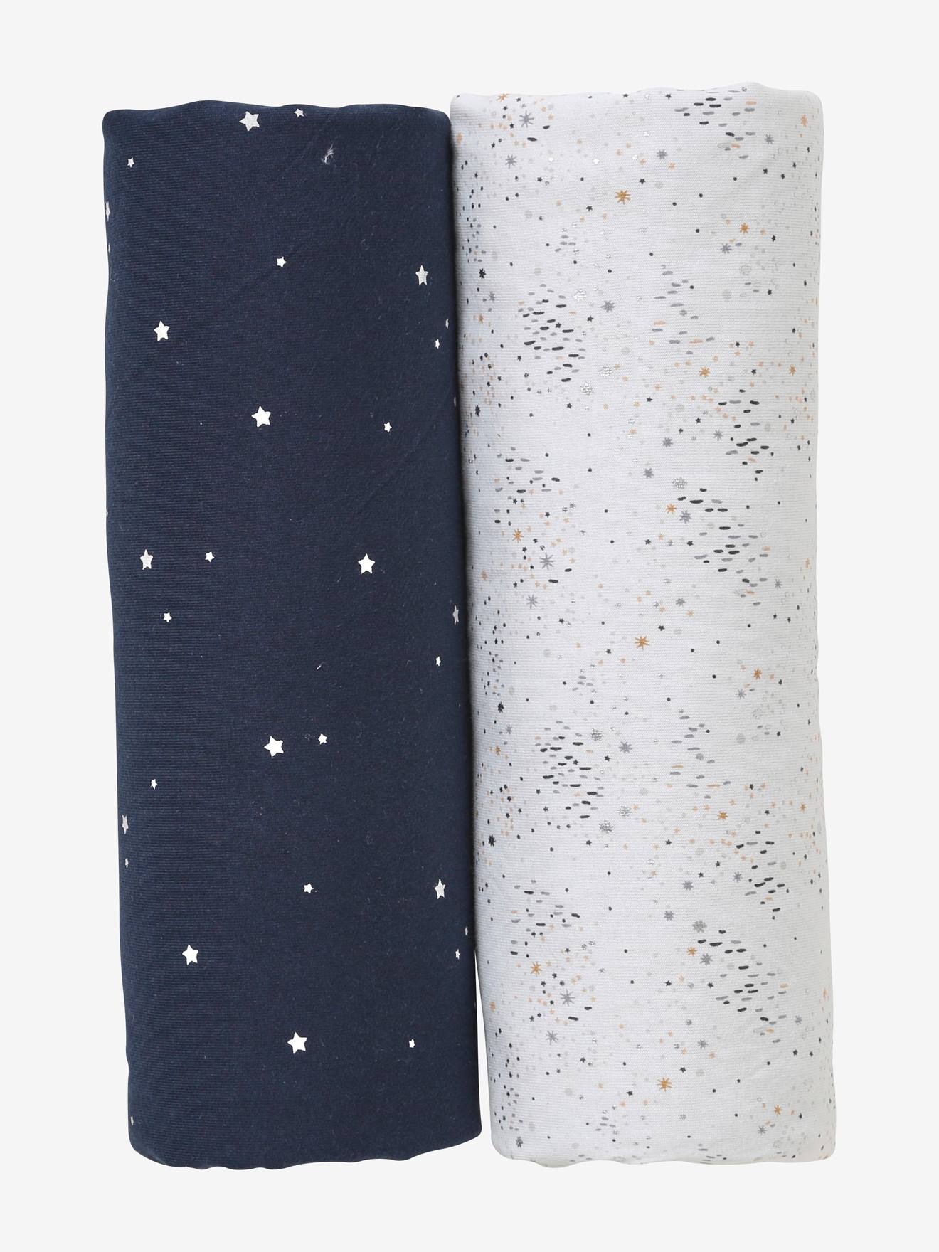• Lot de 2 housses pour berceau et cododo en coton bio* blanc+blanc imprimé+écru+marine/écru - vertbaudet enfant