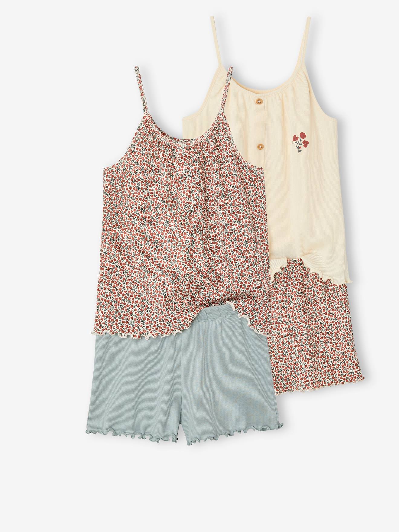 Avec ces 2 pyjashorts en maille côtelée, les nuits d'été de votre petite fille vont être encore plus belles ! 2 débardeurs, 2 shorts... 4 possibilités pour des nuits stylées !