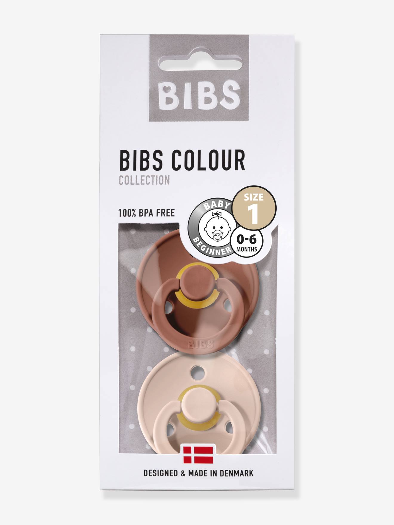 Lot de 2 tétines BIBS Colour, taille 1 de 0 à 6 mois