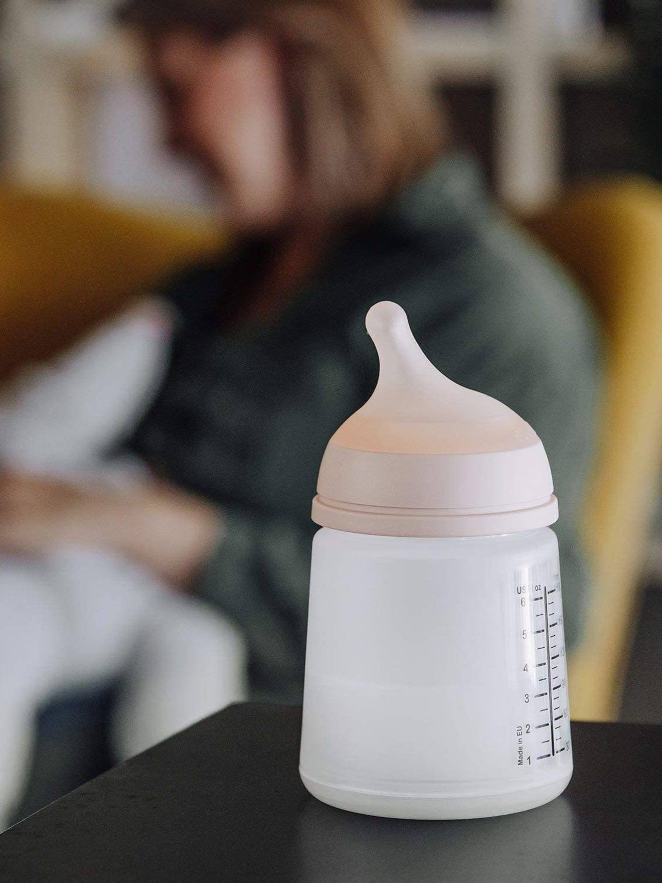 • Texture, inclinaison, forme et couleur imitant le sein maternel et permettant de minimiser la confusion sein-biberon