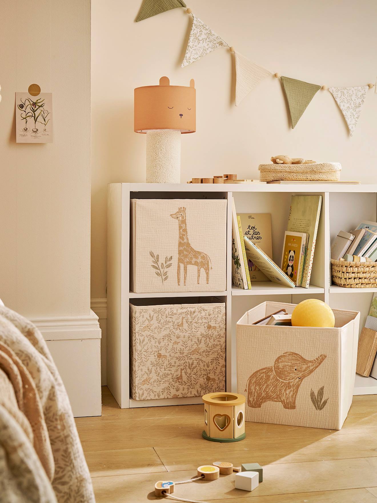 Un lot de 3 bacs pour ranger les jouets, les livres ou les vêtements de bébé. Un éléphant, une girafe et un motif jungle, ces bacs sont parfaits pour décorer la chambre de bébé.
