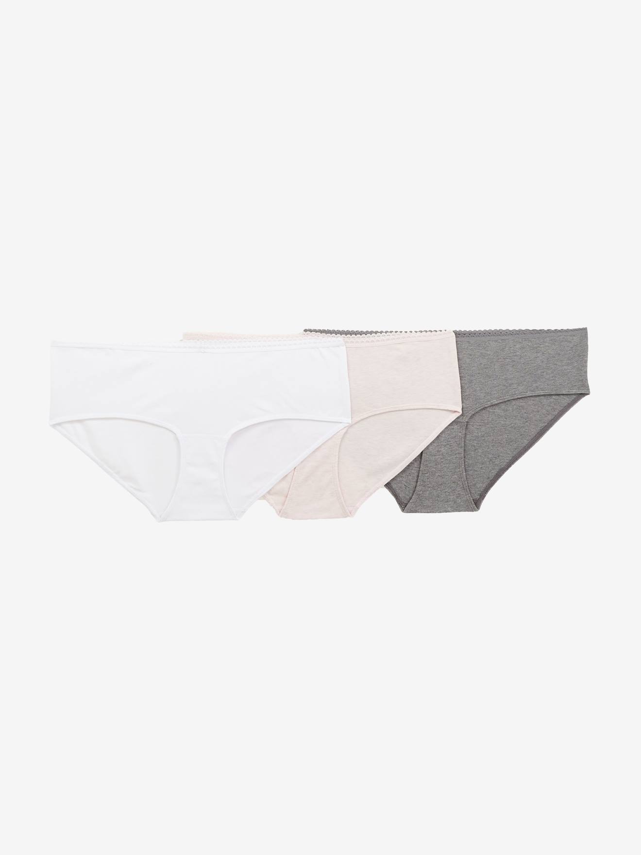 Accueil>Vêtement de grossesse>Lingerie grossesse>Culotte de grossesse, shorty>Lot de 3 shorties de grossesse en coton bio - gris clair uni