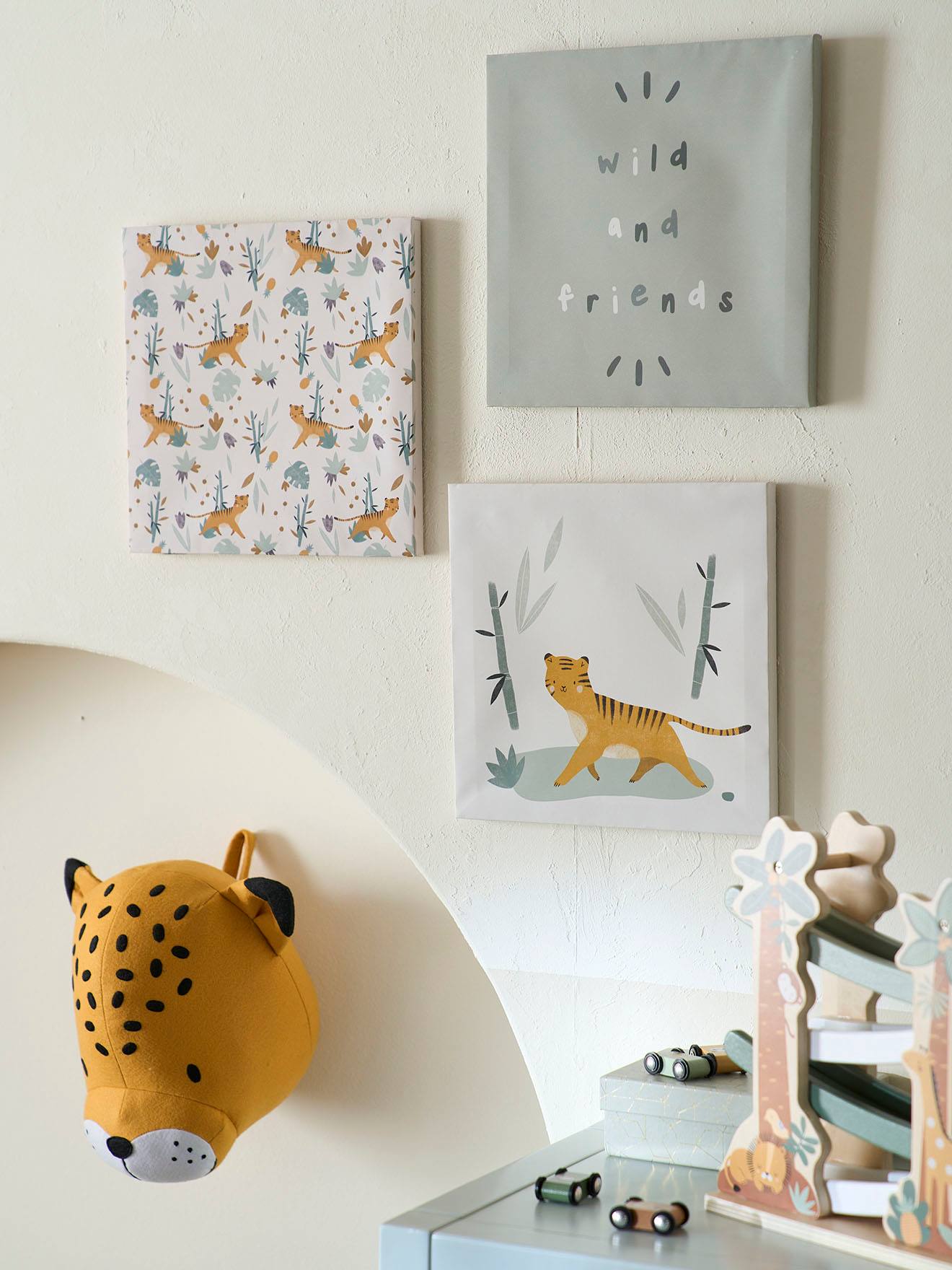 3 toiles à jouer en triptyque ou à disperser dans la chambre pour créer une ambiance jungle très appréciée des petits !