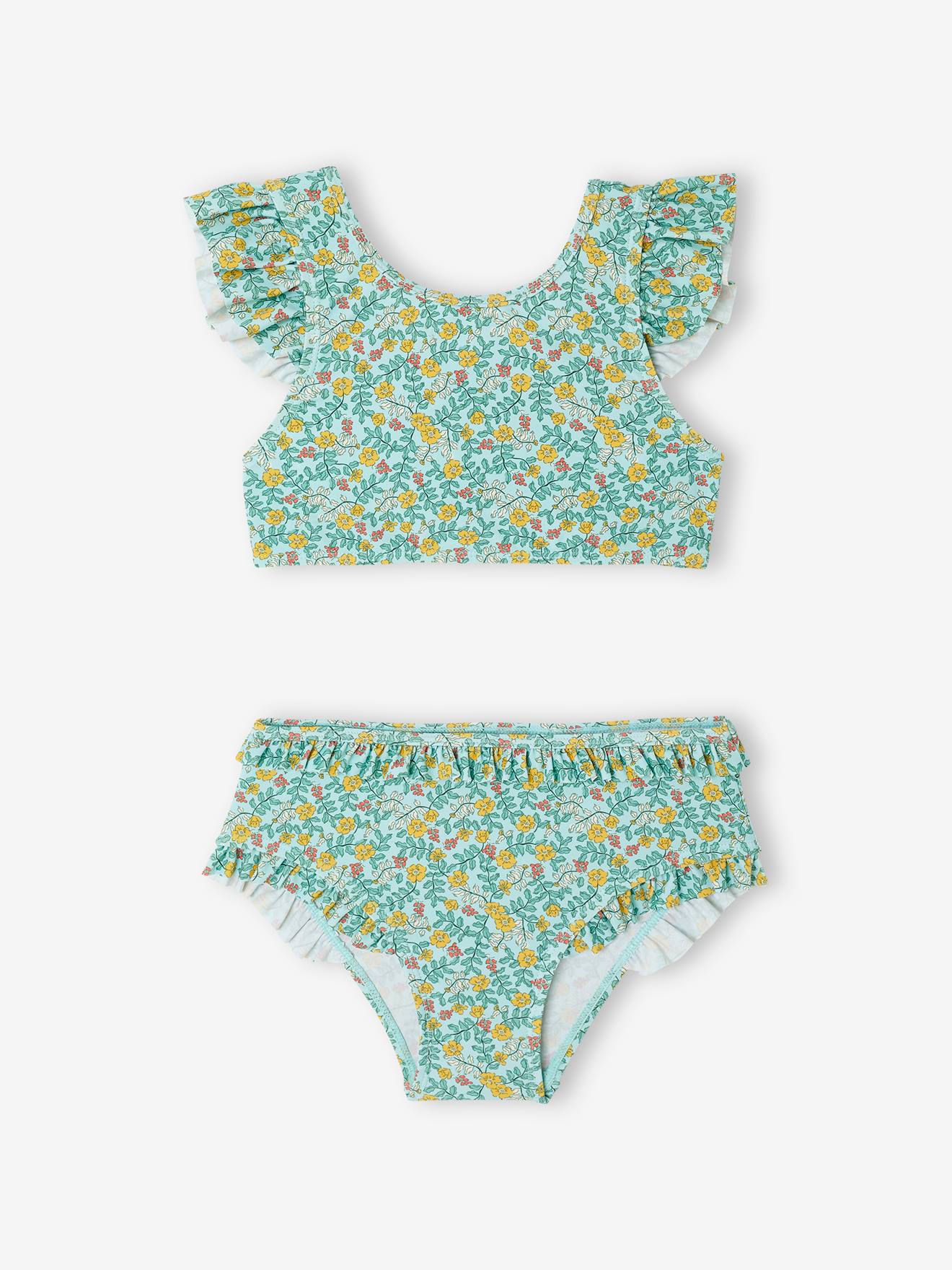 Maillot de bain 2 pièces fleuri fille - bleu ciel