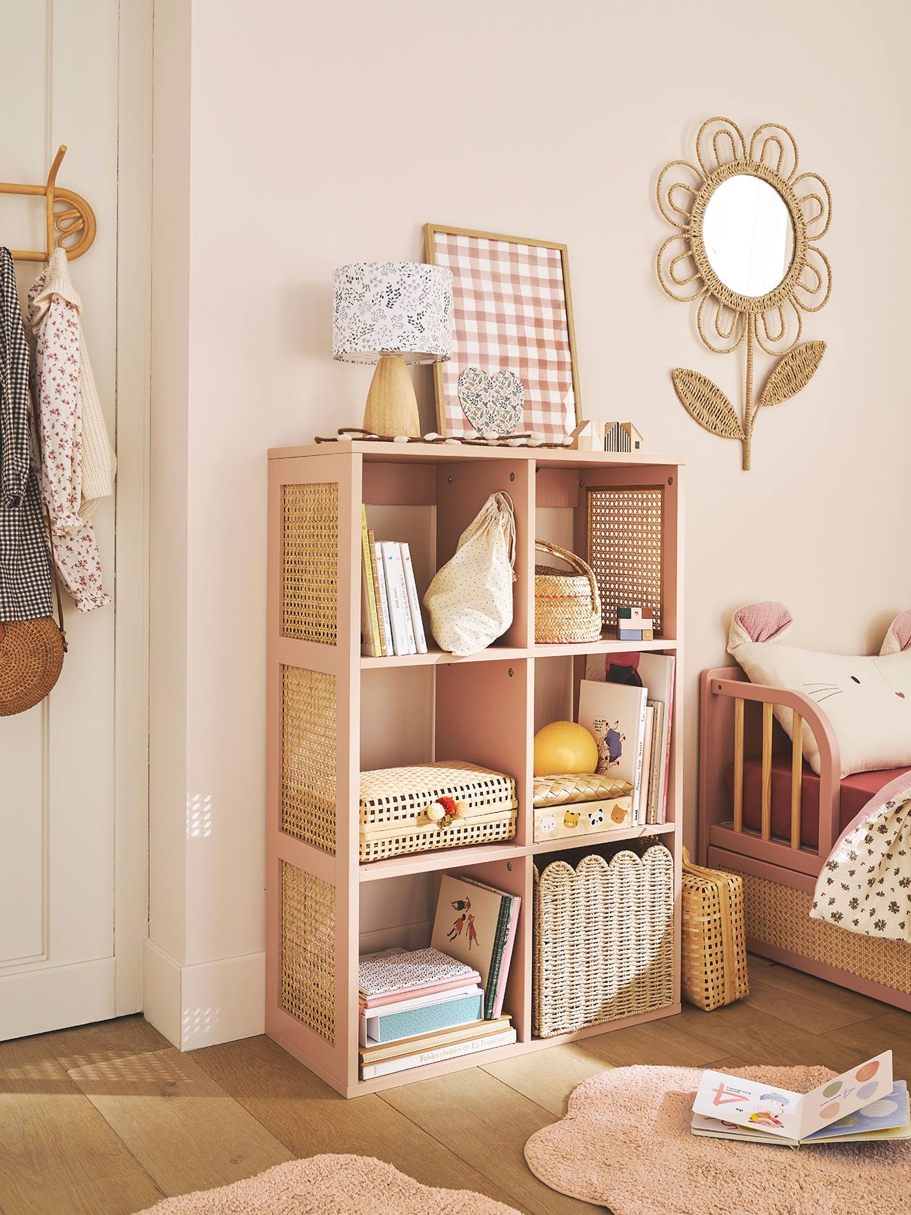 Un meuble à cases idéal pour ranger ses trésors et décorer sa chambre ! On craque pour les finitions cannage et ses jolies couleurs pour une chambre tendance et romantique !
