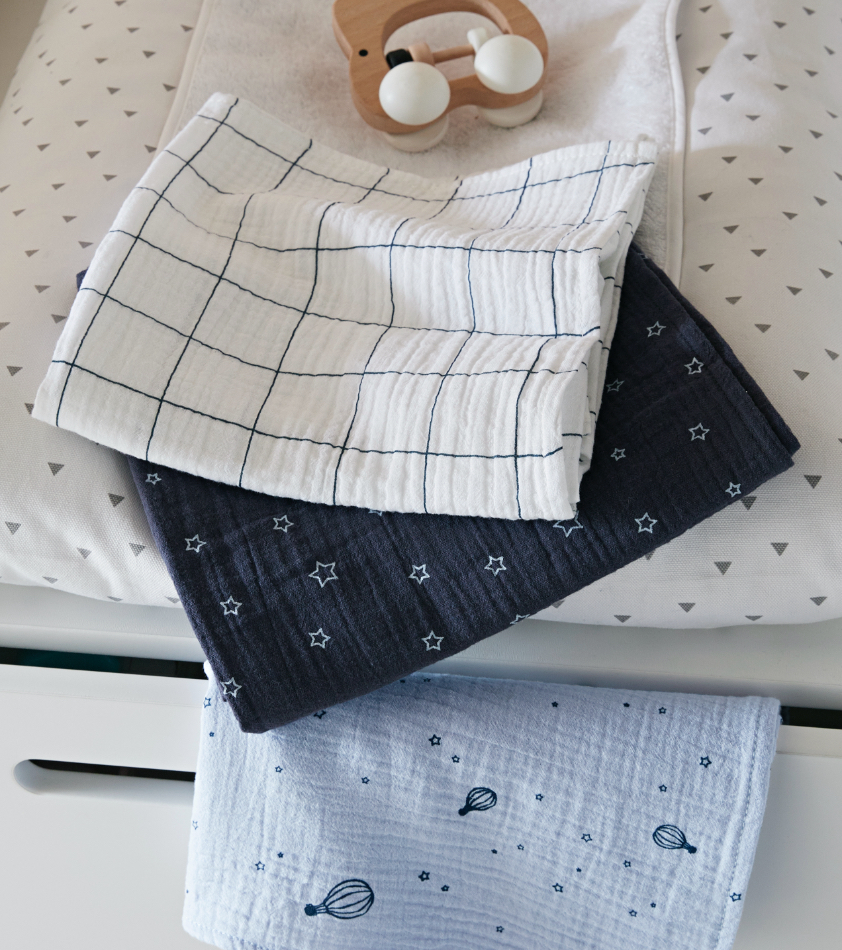 Chez vertbaudet, nous sommes fans de la gaze de coton, toute douce et respirante qui respecte vraiment la peau des tout petits. Et parce que cette matière nous semble parfaite pour emmailloter votre bébé, nous avons créé le lot de 2 langes d’emmaillotage à emporter partout avec vous dans votre sac à langer !