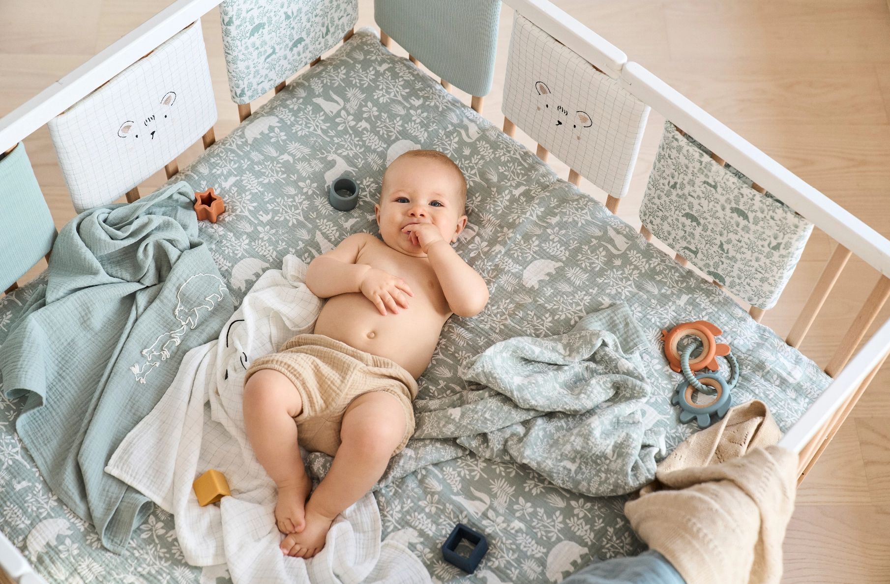 Tour de lit, gigoteuse, plaid tout doux… Des matières douces et des imprimés à croquer : c’est la base pour accueillir bébé dans un nid douillet !
