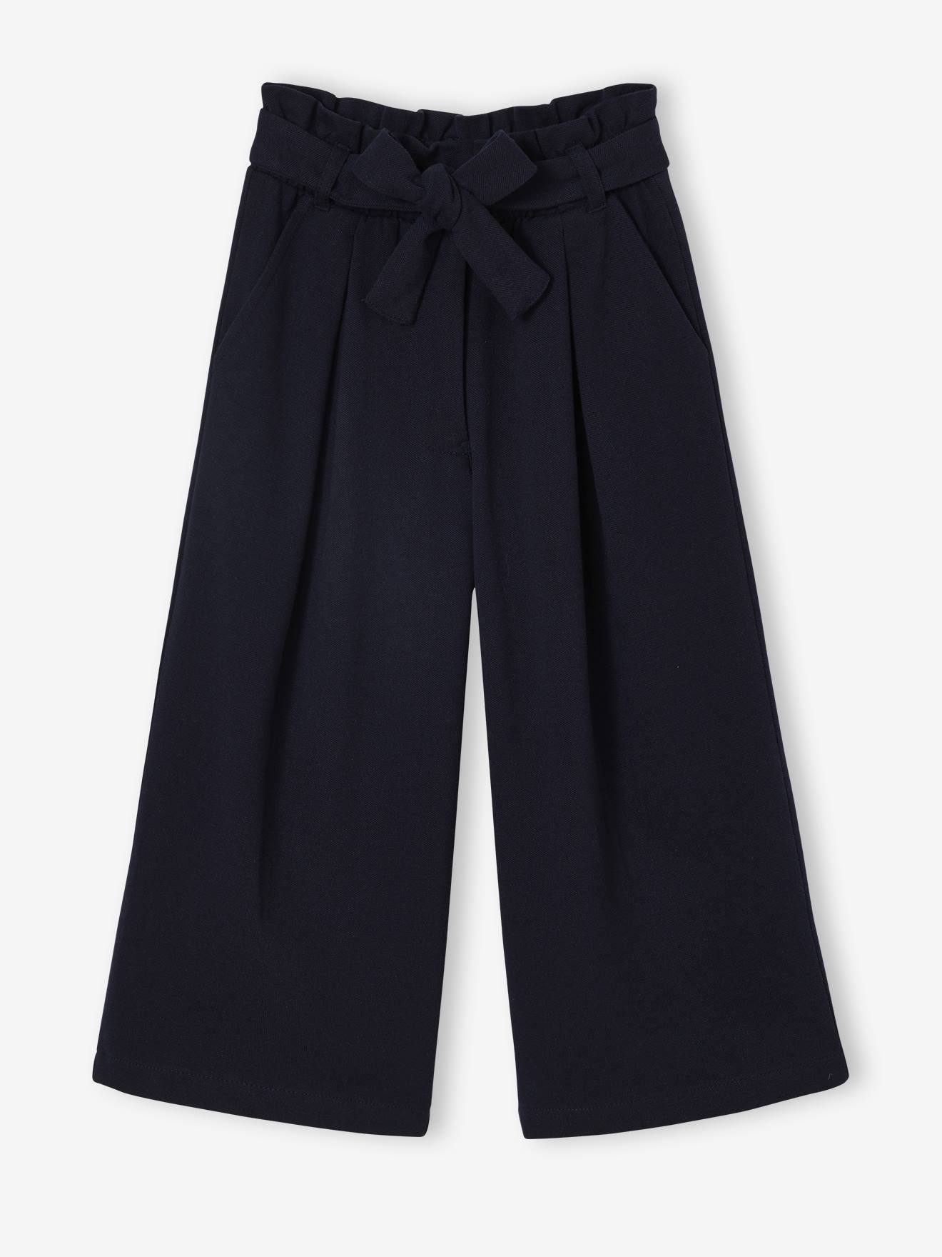 Accueil>Vêtement fille enfant>Pantalons fille>Pantacourt fille large en maille piquée - marine