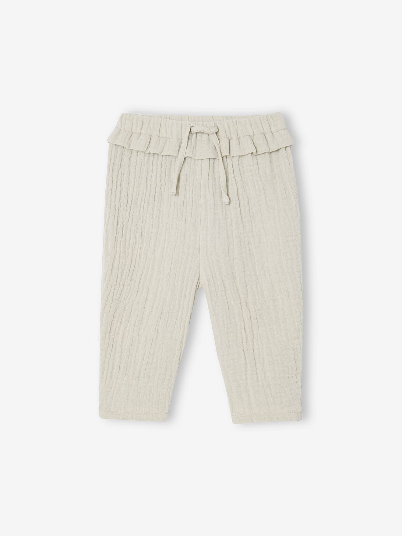 Accueil>Vêtements bébé>Pantalon bébé fille / garçon>Pantalon bébé fille en gaze de coton - vert de gris