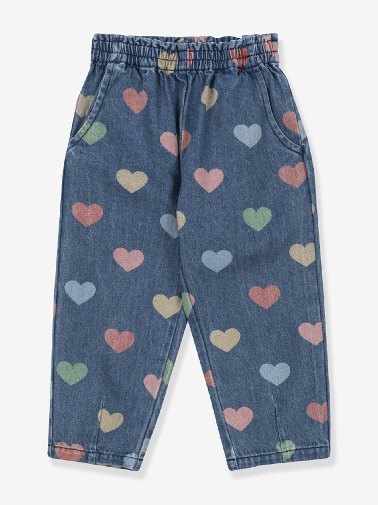 Accueil>Vêtement fille enfant>Pantalons fille>Pantalon en denim souple motifs coeurs fille - bleu