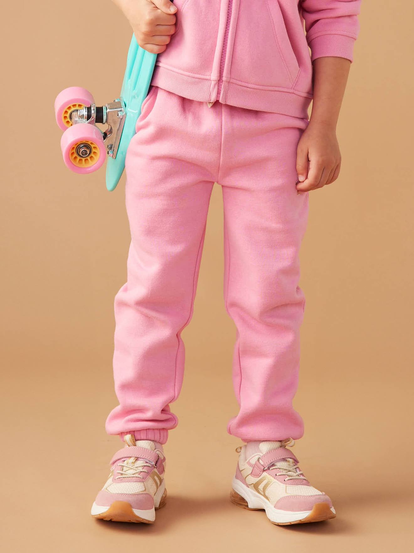 Jogging fille en molleton 60% coton, 40% polyester, gratté tout doux à l'intérieur.
