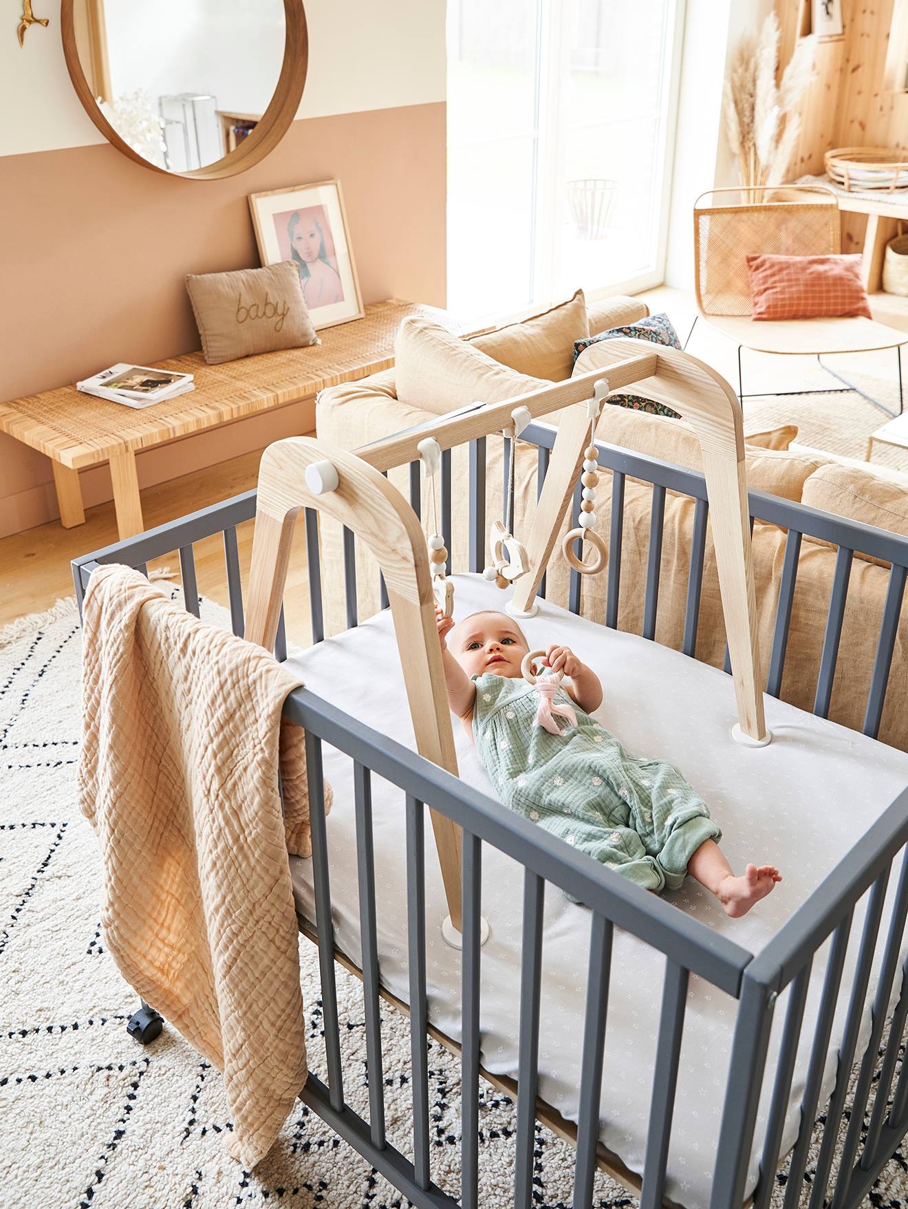 • Parc réglable sur 3 positions : 24, 35 et 48 cm - haute ou intermédiaire (plus aisée pour prendre ou déposer bébé) ou basse