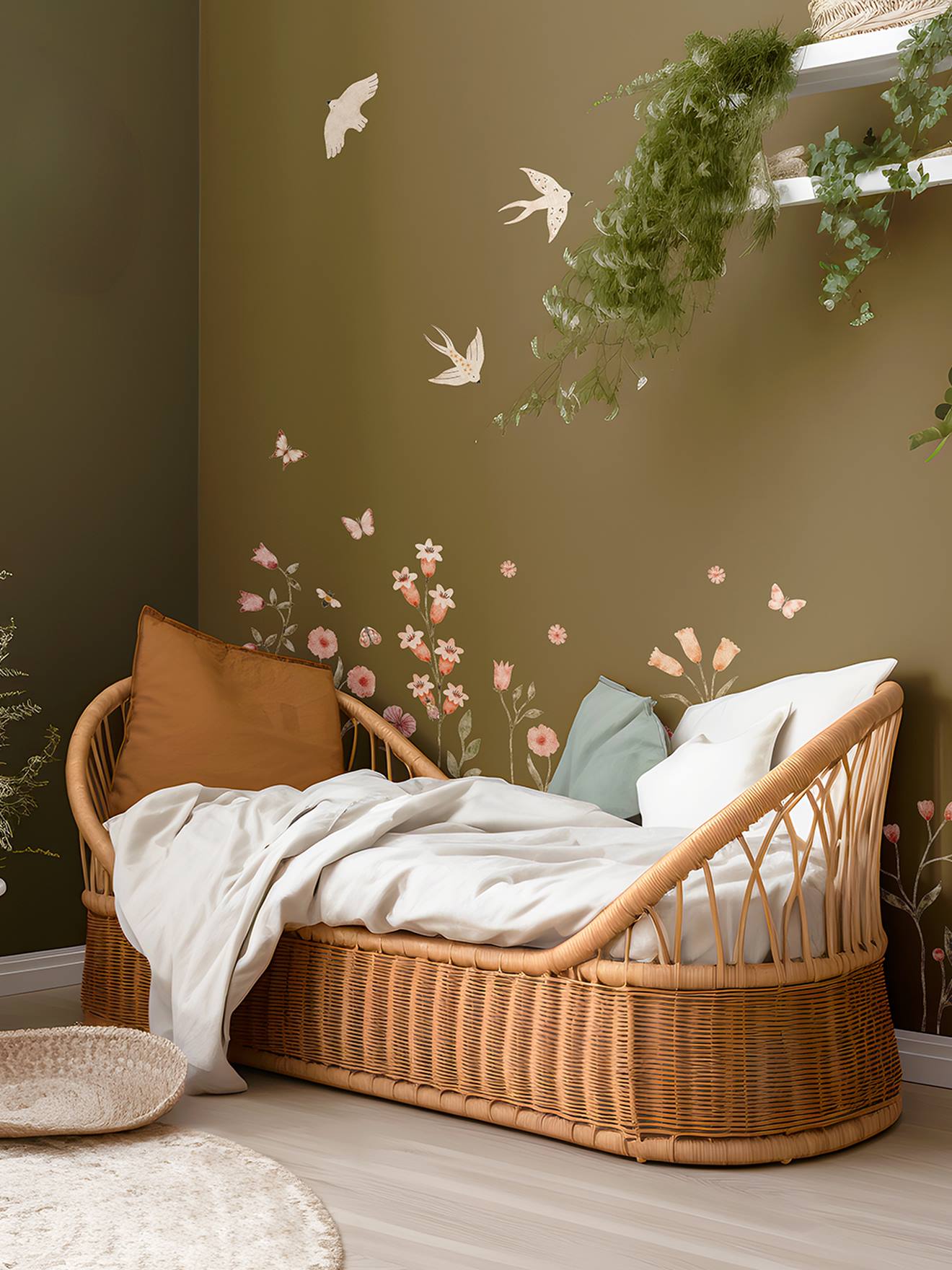 Apportez une touche de charme champêtre à votre intérieur avec ces stickers hirondelle aux jolis motifs de fleurs sauvages. Ces hirondelles beiges délicatement ornées de fleurs créent une scène séduisante et bucolique. Parfait pour évoquer la douceur et l'élégance de la campagne, ces stickers ajouteront une ambiance apaisante et naturelle à votre décoration.