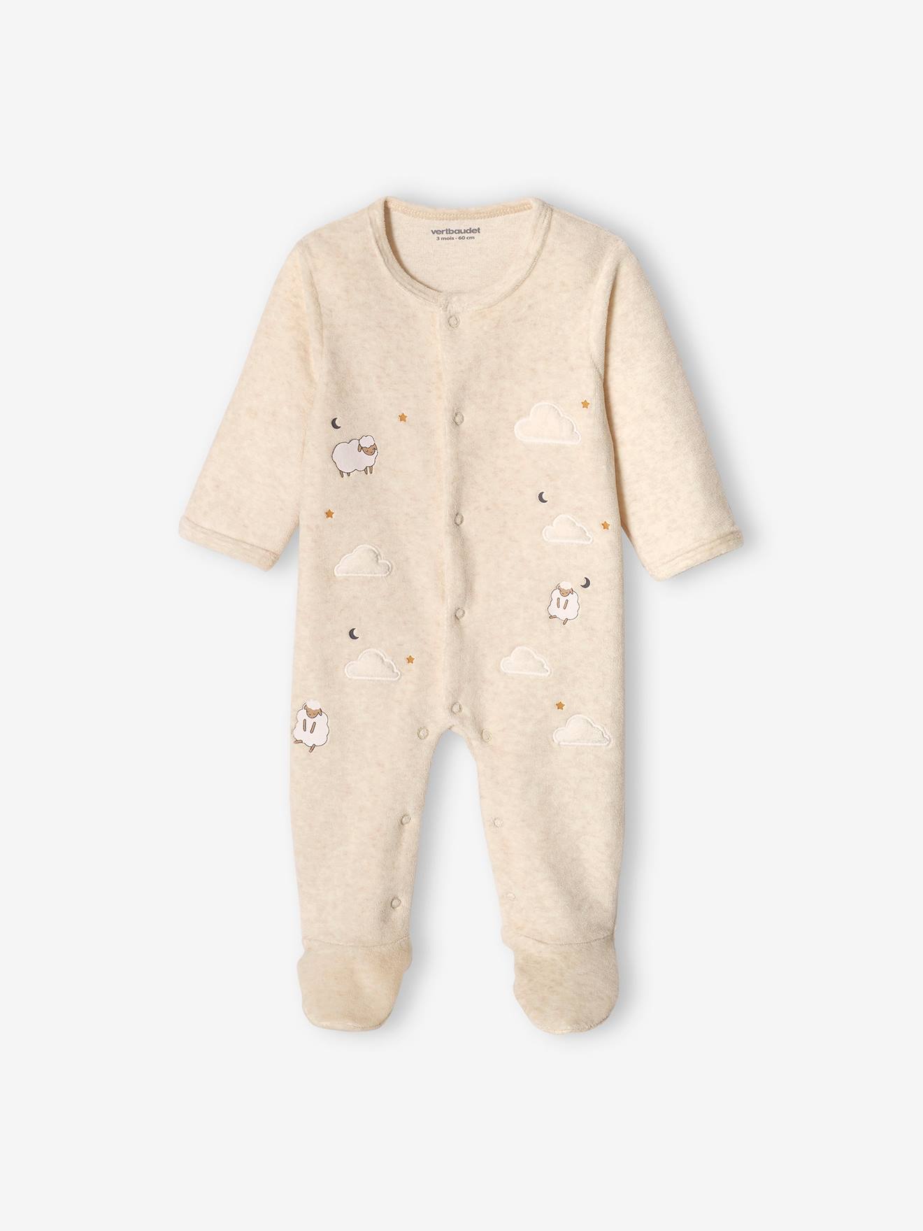 Pyjama bébé mixte en velours ouverture devant - beige chiné