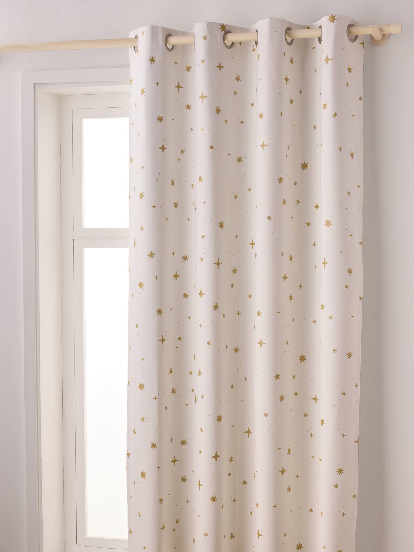 Rideau à oeillets occultant imprimé étoile - blanc / etoiles