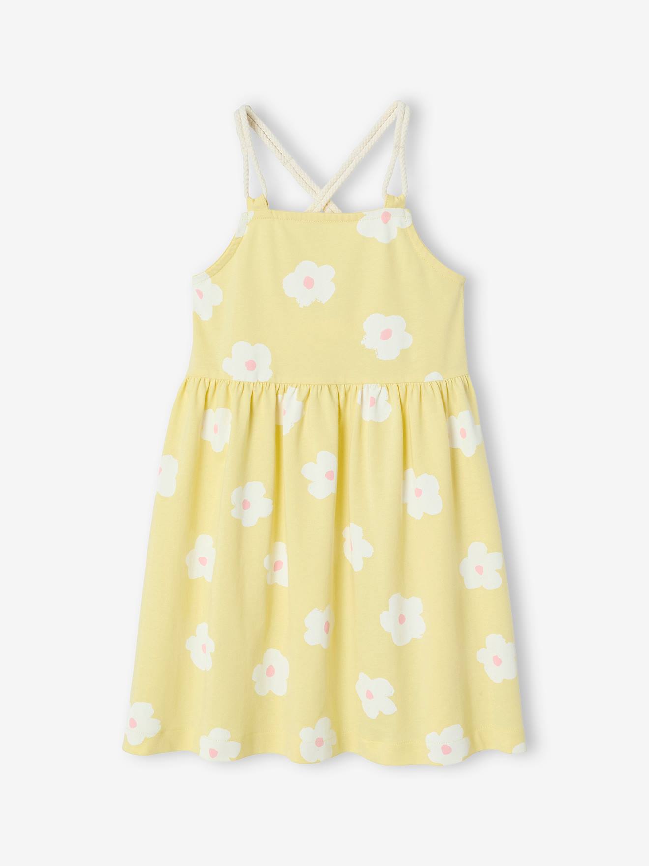 Robe à bretelles cordelette imprimée fleurs fille - jaune pâle