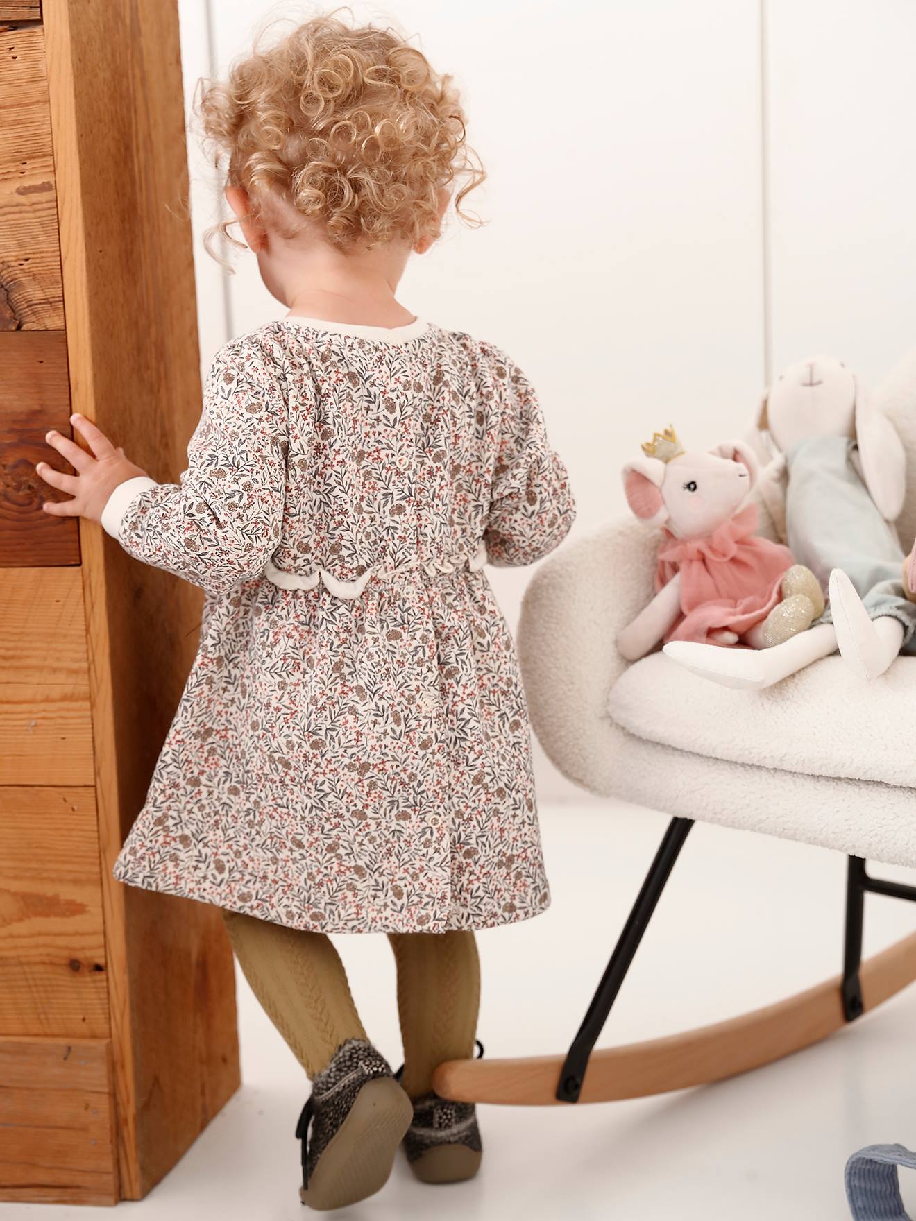 • Robe bébé en molleton beige doré+bleu nuit+rose poudré - vertbaudet enfant