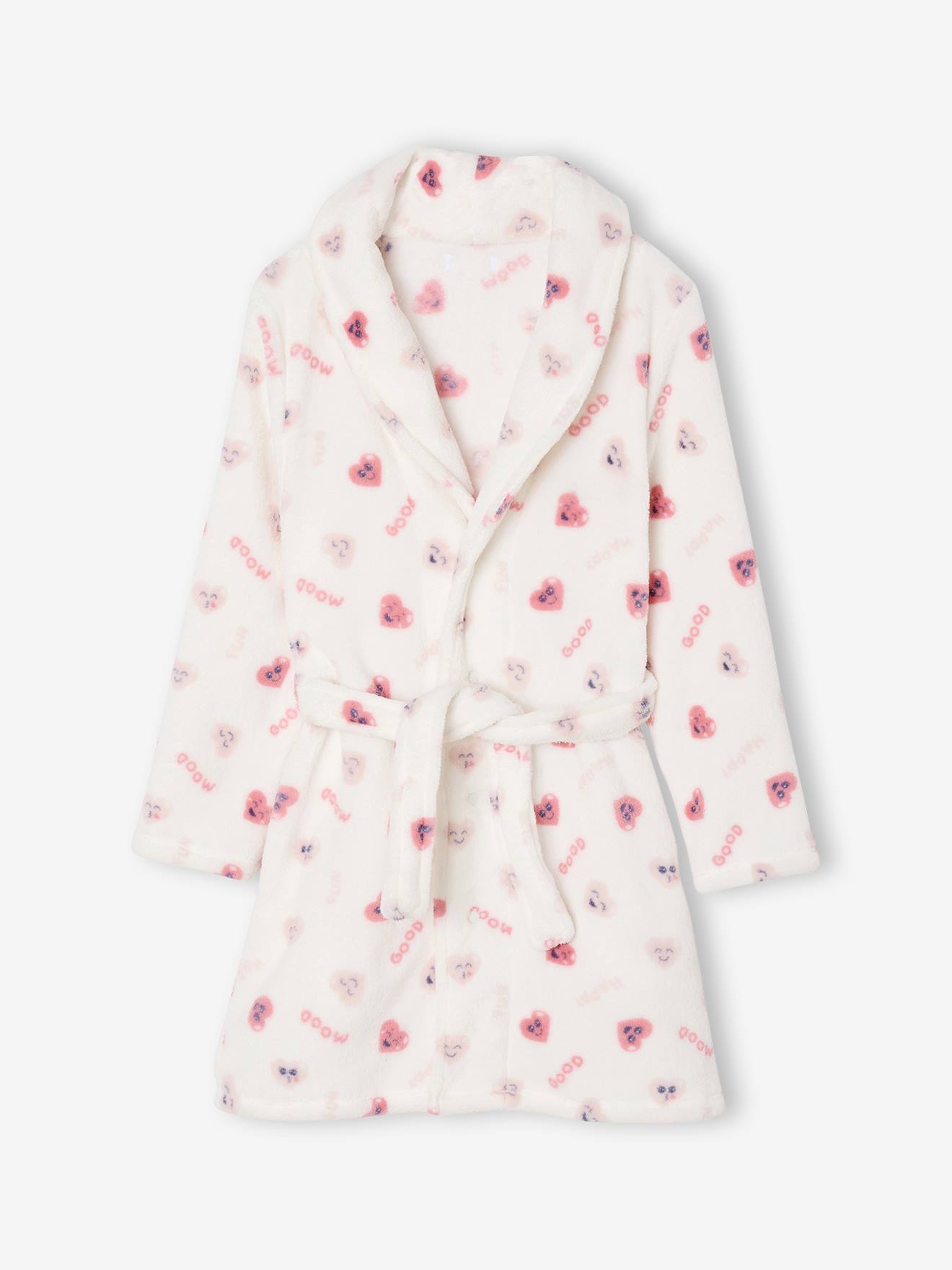 Un joli imprimé happy et coeur va tenir chaud à votre petite fille cette saison ! Cette robe de chambre toute douce sera l'alliée idéale des soirées les plus fraîches...