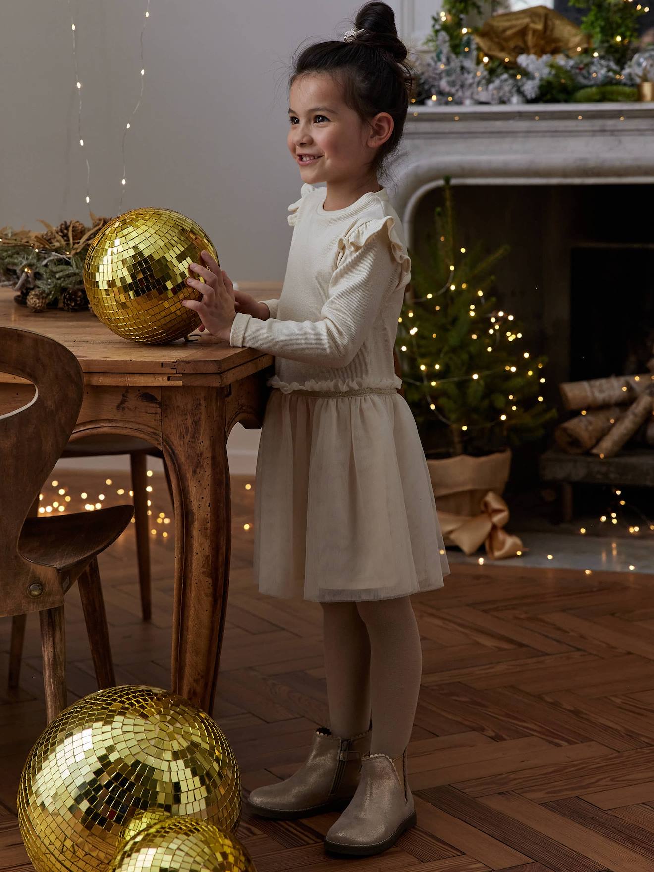 Accueil>Vêtement fille enfant>Robe fille enfant>Robe Noël bi-matière jupon en tulle fille - écru