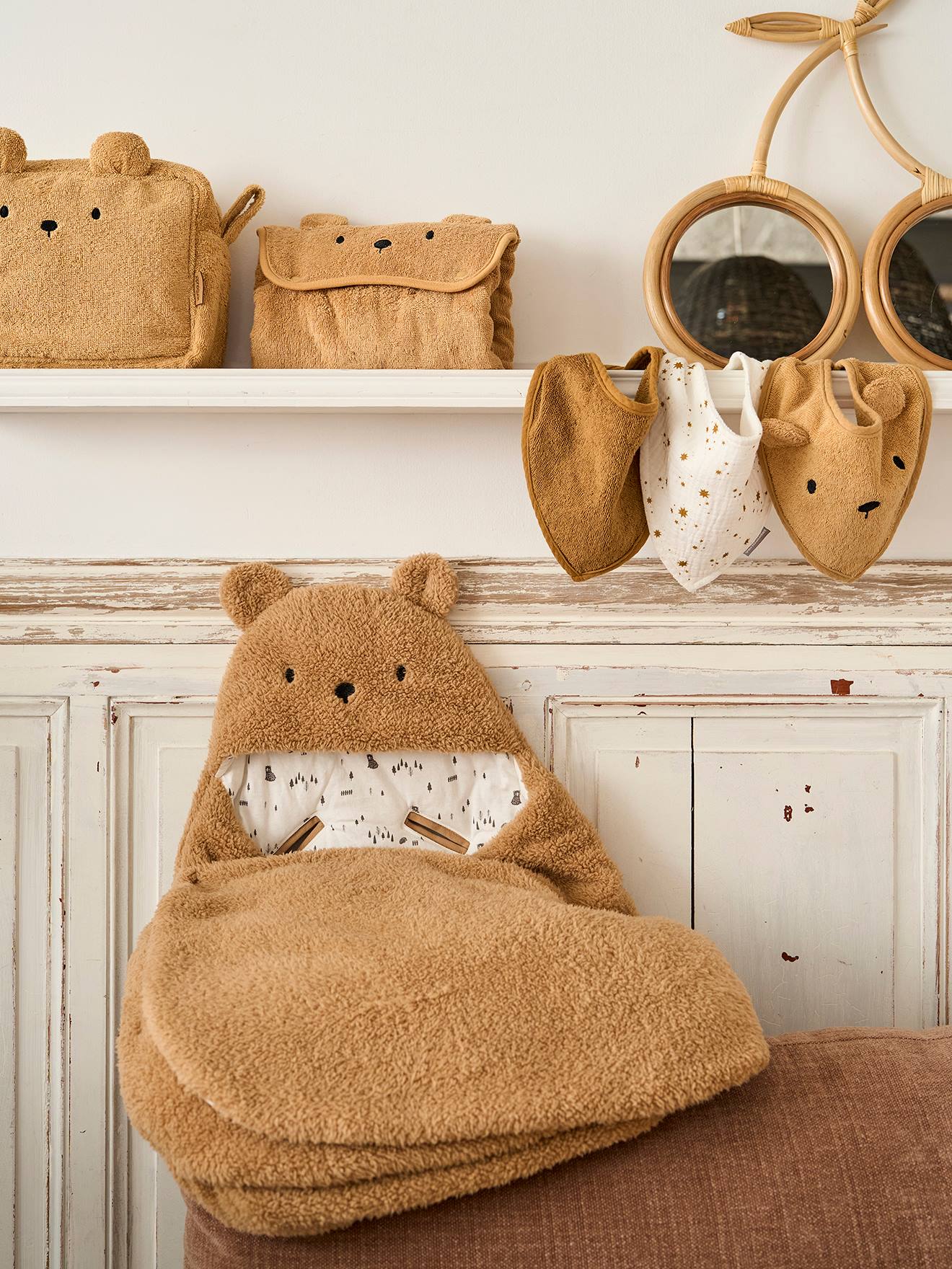 Un sac à langer avec une forme sympa et originale, qui accueille le nécessaire de bébé lors de vos déplacements. Sa matière peluche toute douce et son petit pompon lui donnent un style tout en tendresse.
