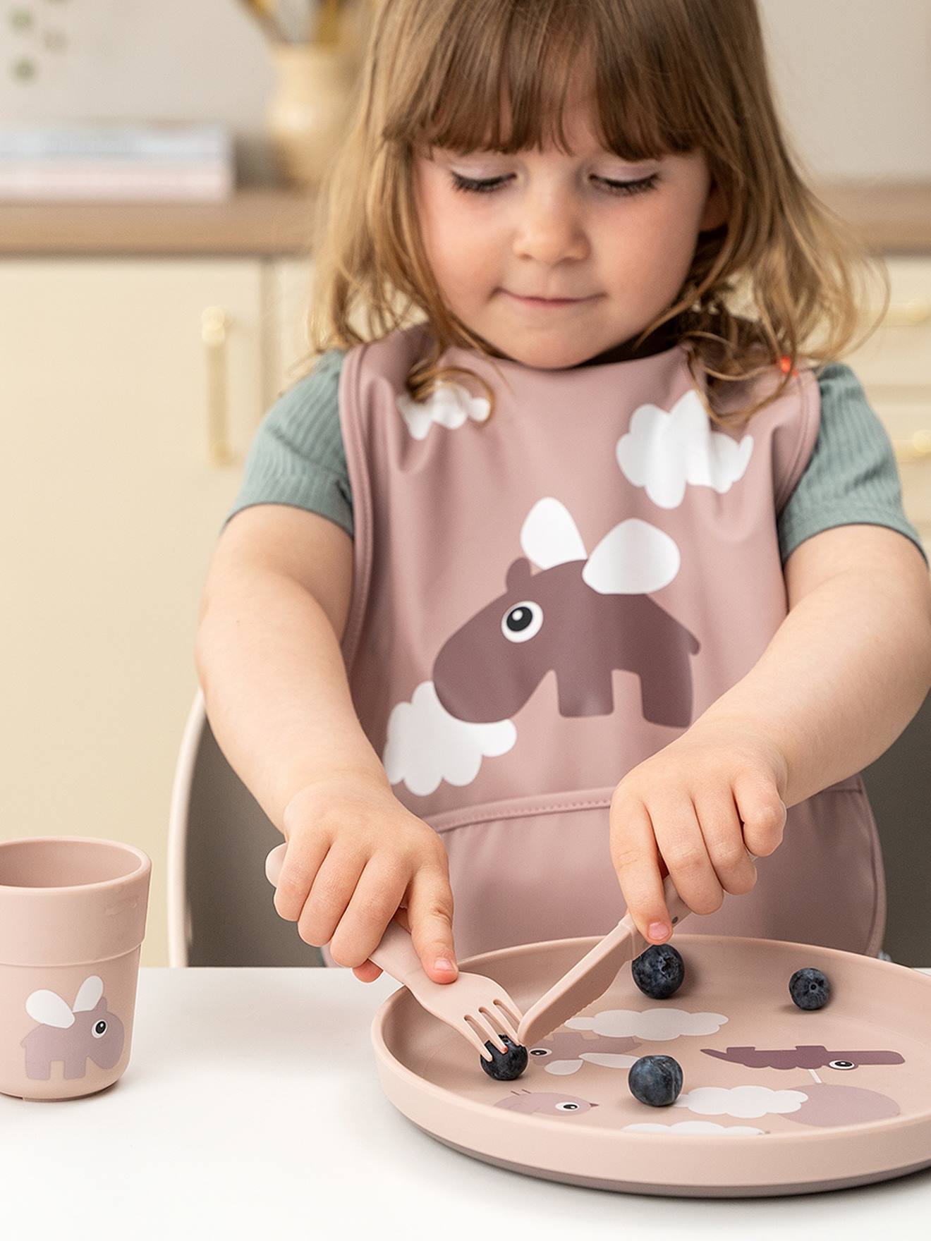 Grâce aux bords doux et arrondis de ces couverts Foodie, les petits  apprennent à manger seuls en toute sécurité. Ces couverts sont idéals  pour les petites mains et ont été minutieusement testés par les enfants.  Cet adorable set de couverts pour bébés et petits enfants comprend une  cuillère, une fourchette et un couteau. Après d'innombrables repas de  famille, les couverts peuvent être recyclés afin de fabriquer de  nouveaux produits du quotidien. Ce joli set égayera tous les repas. Sa  surface matte et soyeuse se marie parfaitement au reste de la gamme  Foodie.