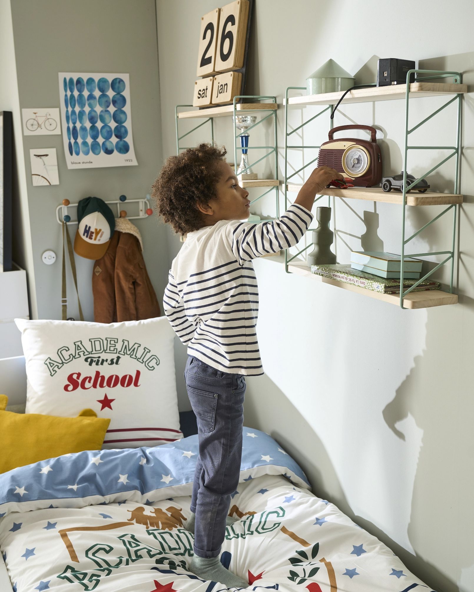 Avec ses blasons style collège américain et son bureau super équipé pour bien travailler, l'ambiance Academic donne un air faussement studieux à la déco ! Salle de classe ou cour de récré...