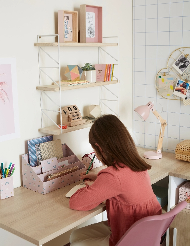 Une chambre comme une ôde à l’amitié avec une parure colorée « BFF » et une multitude de coussins pour s’installer confortablement et se raconter les derniers petits secrets !