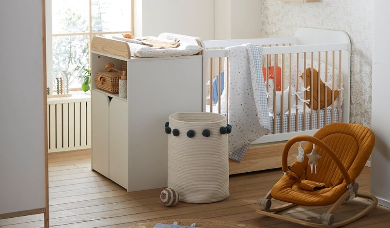 Tapis de sol, gigoteuse, matelas à langer… Les animaux de la ferme donnent un air campagnard à la chambre de bébé ! Gaze de coton et motifs vichy s’allient parfaitement aux meubles bois et blancs, qui créent une ambiance chaleureuse et naturelle !