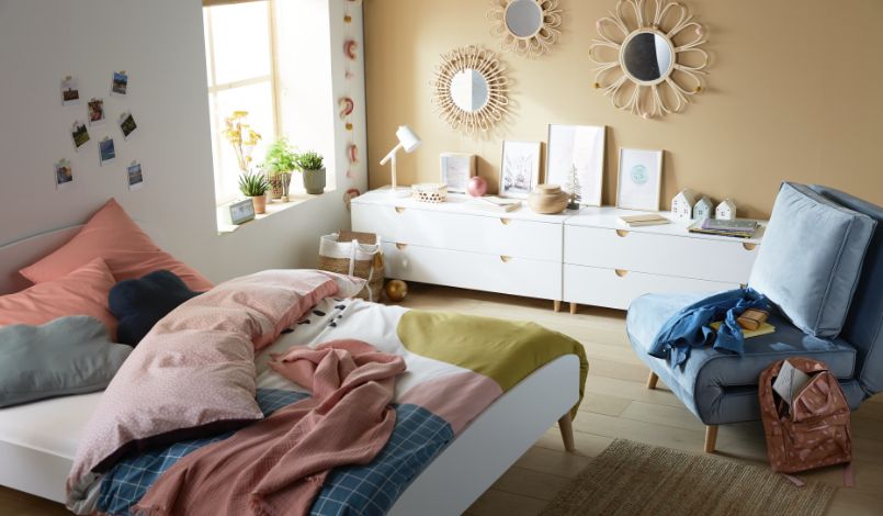 Quel enfant ne rêve pas de transformer sa chambre en un petit studio ? Lit 2 places, photos affichées au mur, banquette convertible… Frappez avant d’entrer 😉 !