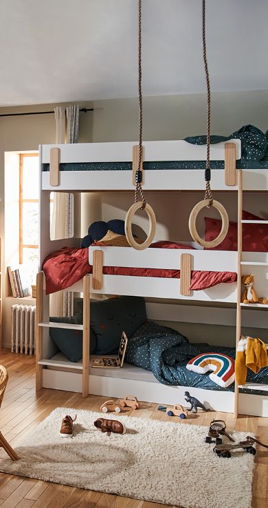 Prendre de la hauteur pour gagner un espace de jeu, faire un bureau ou encore créer un deuxième couchage… en voilà une bonne idée ! Sous un lit bébé évolutif, un lit mezzanine ou un lit superposé Everest s’ouvre un tas de possibilités… à vous de jouer !