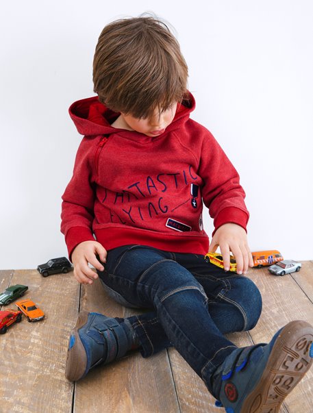 Une coupe et des motifs stylés, une matière confort, une astuce pur s'habiller tout seul... Ce sweat capuche a tout compris à la vie des enfants !