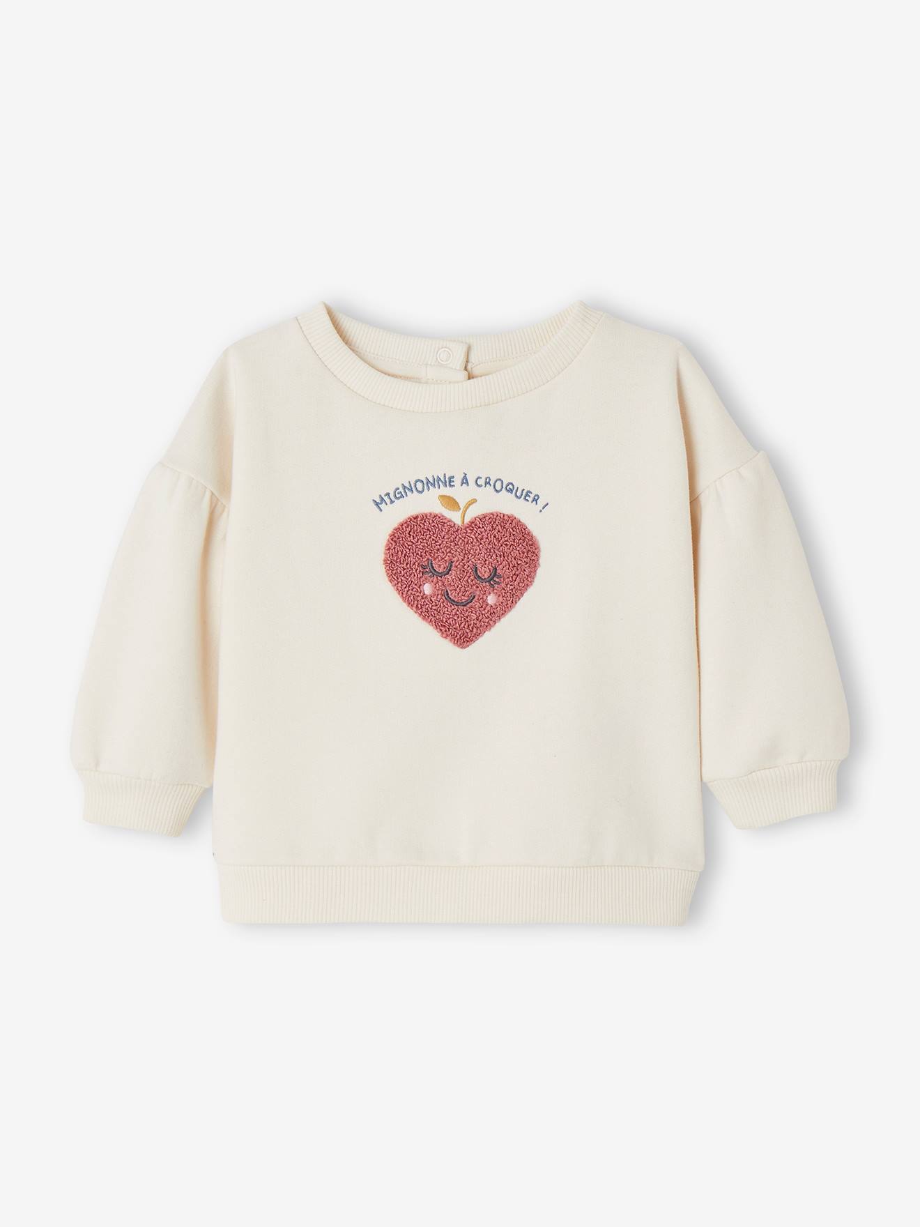 Sweat bébé fille en molleton 80% coton, 20% polyester recyclé, douillet à l'intérieur.