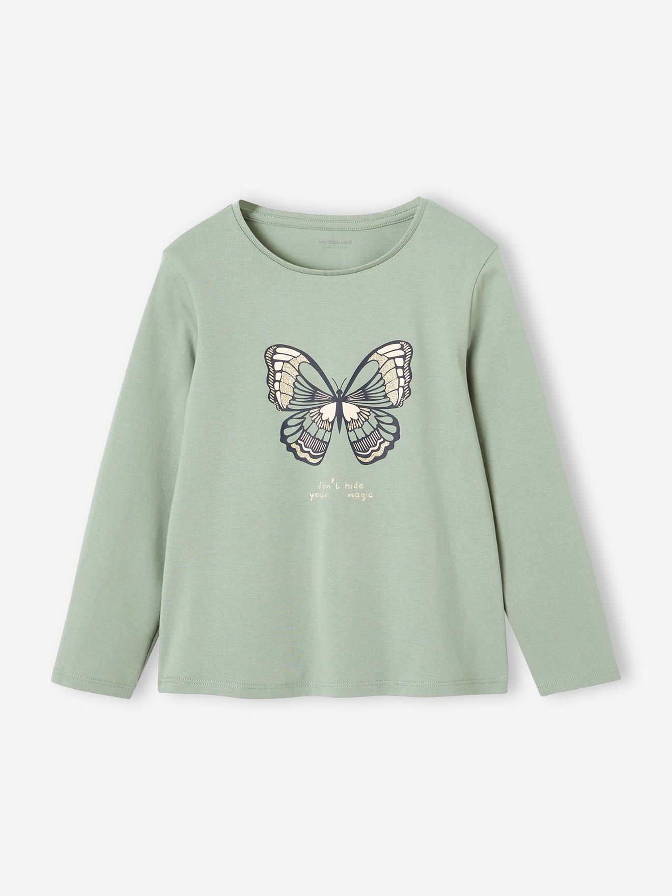 Accueil>Vêtement fille enfant>T-shirt, sous-pull>T-Shirts fille>Tee-shirt à message fille - vert de gris