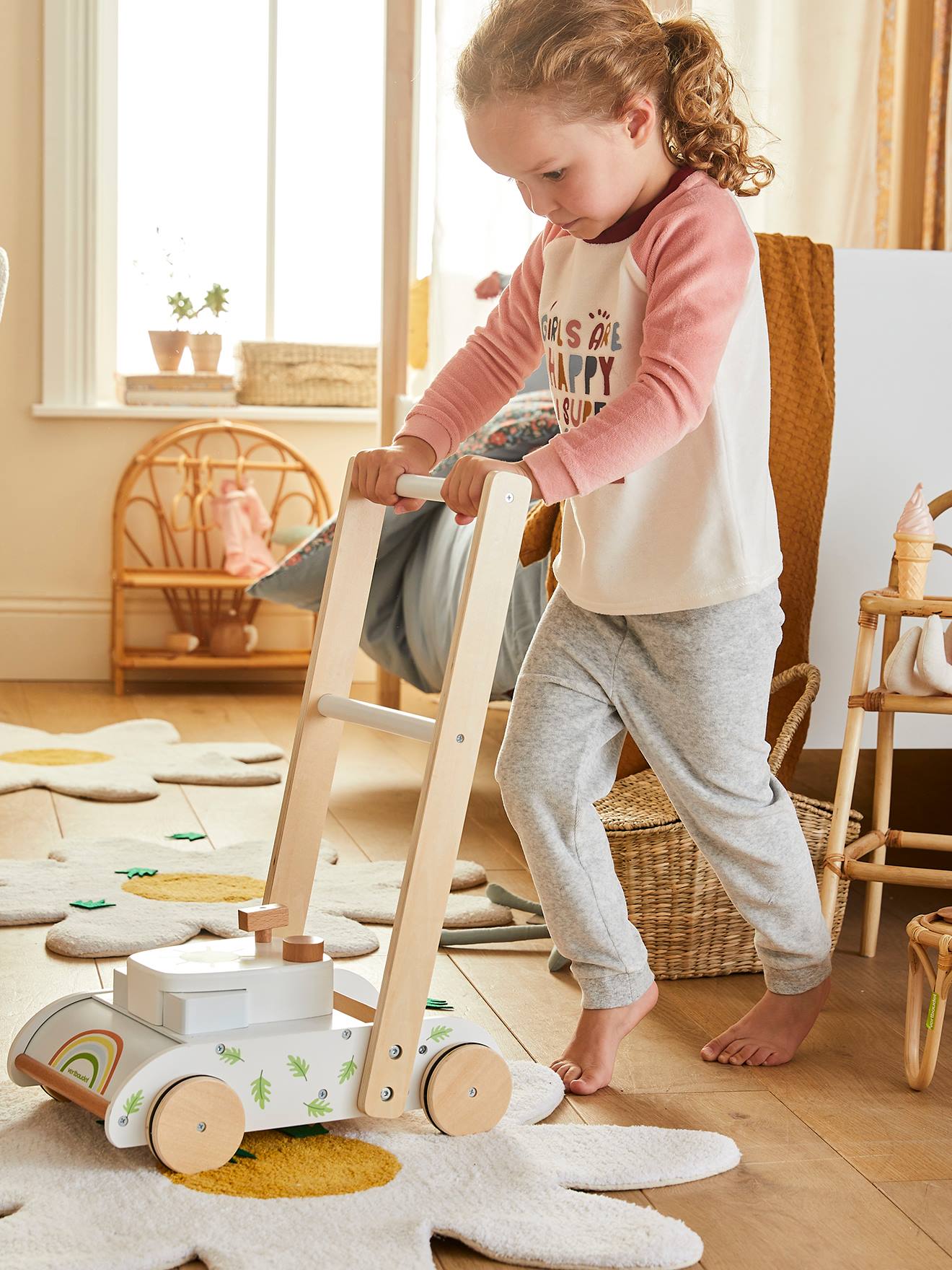 Les enfants vont adorer arpenter les couloirs de la maison avec cette jolie tondeuse en bois ! Un beau jouet qui leur permettra de développer leur imagination en s'inventant de grandes histoires !