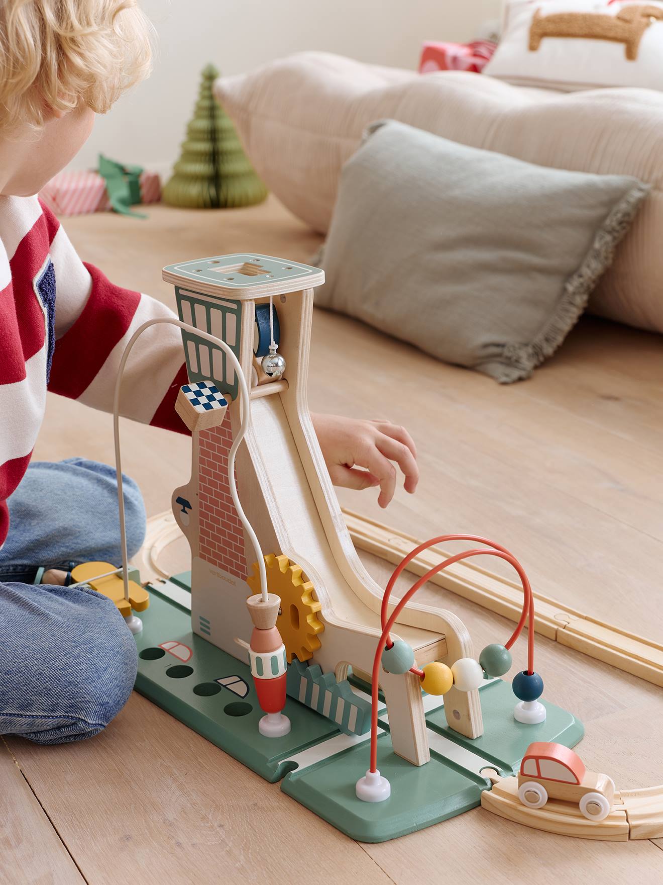 Accueil>Jeux et jouets bébé et enfants>Jeux d'imagination>Véhicules, garages, circuits et trains>Tour avec rampe de lancement multi-activités en bois FSC® - bois