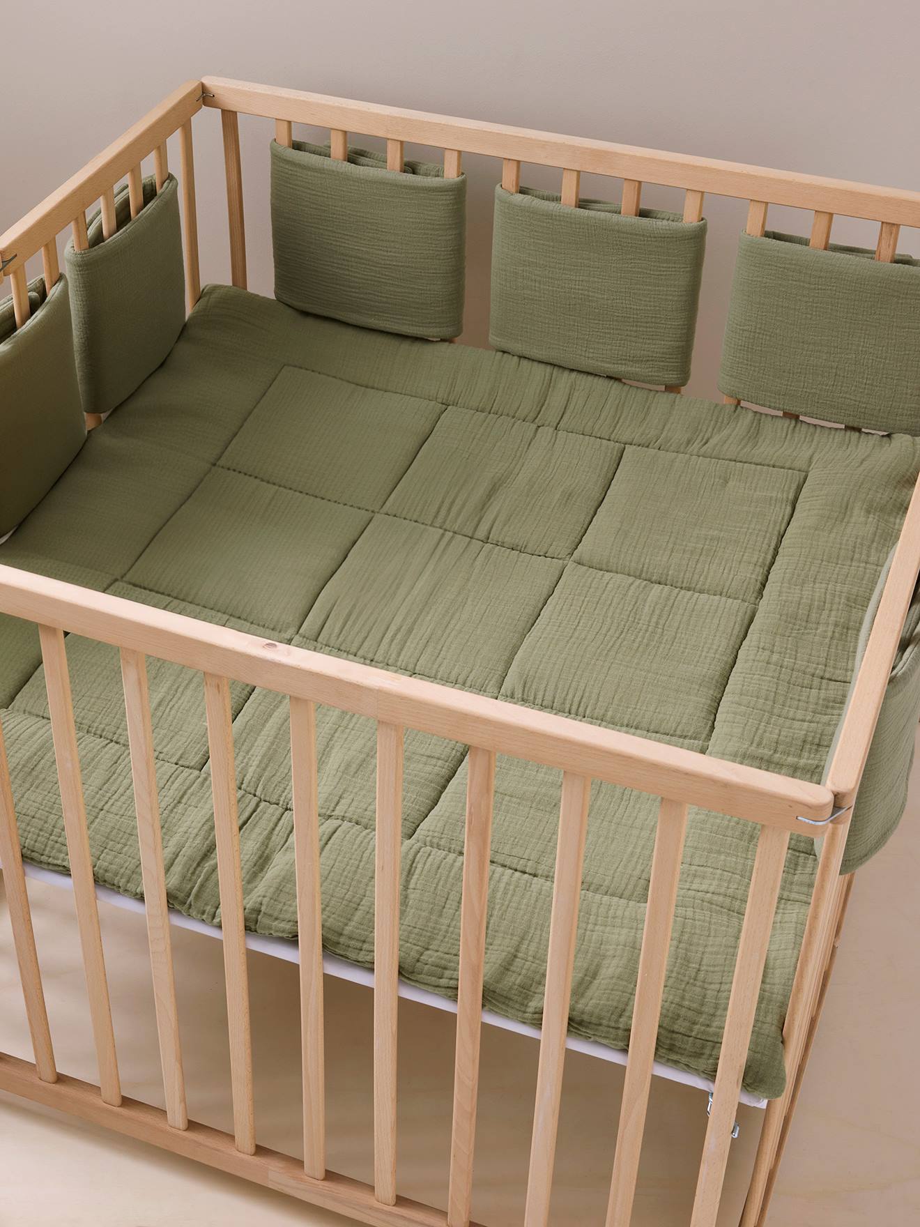 Accueil>Puériculture>Parc bébé>Tour de lit / tour de parc pare-chocs en gaze de coton uni - olive